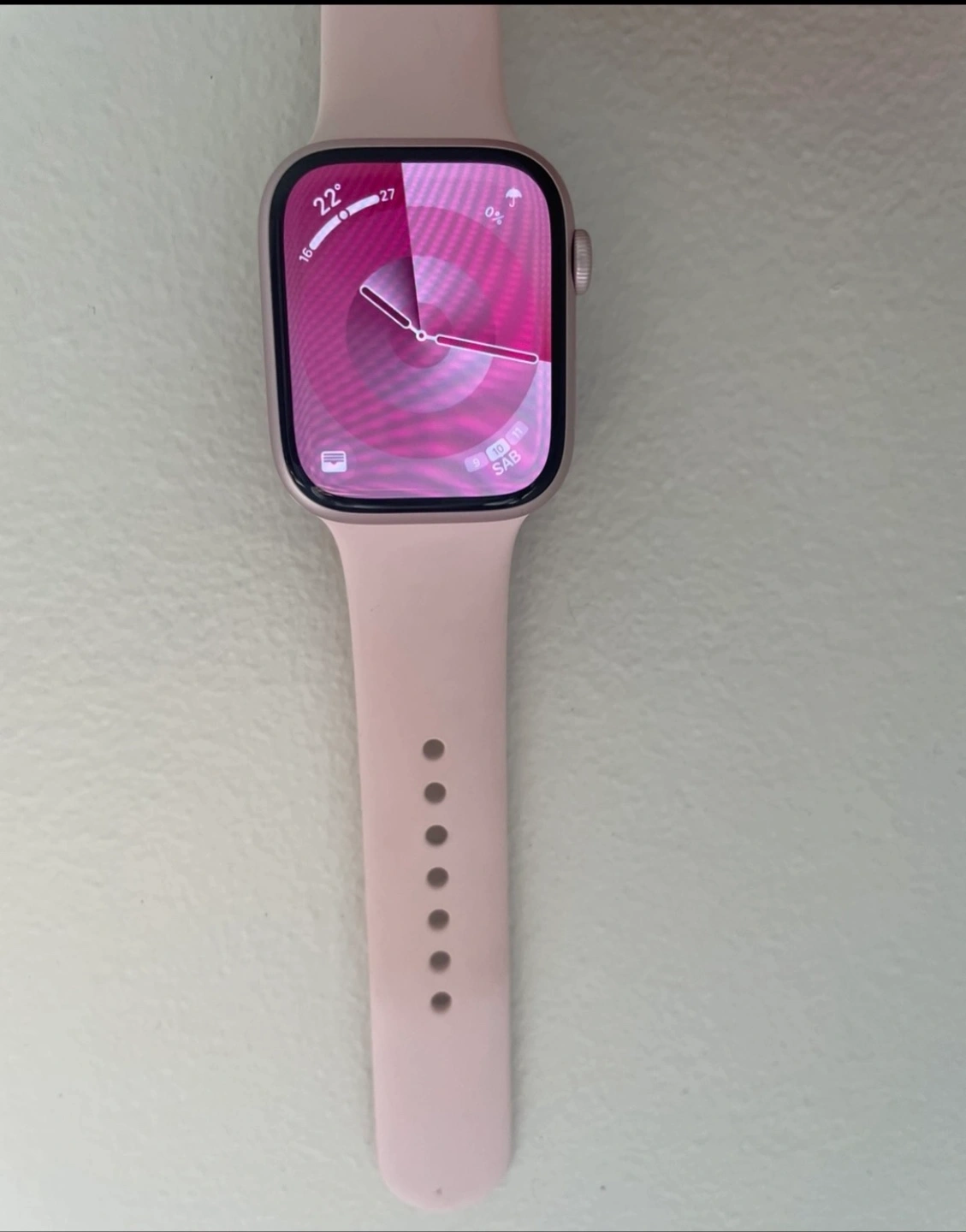 Stylish smartwatch. Features a pink strap and a digital display. A great item for staying connected while keeping track of your health and wellness. 98% health battery