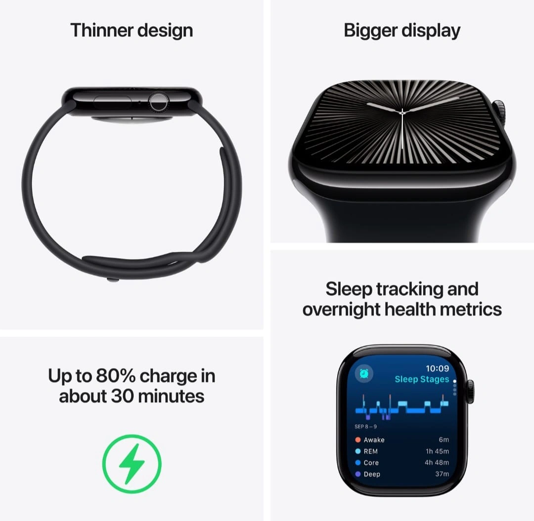 Apple Watch Series 10 - GPS, 46mm, Jet Black, with Black Sport Band, M/L size - Condition: Brand new, unopened, unused (sealed box) - Latest model with a bigger, brighter Always-On Retina display and ultra-thin, lightweight design - Built-in GPS, advanced fitness & health tracking (ECG, heart rate, sleep, cycle tracking) - Water-resistant and dust-resistant — suitable for workouts and daily wear - Size: 46mm case with Black Sport Band (Medium/Large) - 64GB storage and fast performance with the newest watchOS - Includes: Apple Watch, Black Sport Band (M/L size), magnetic charging cable and quick start guide - Official Apple warranty (yet to be registered) - Perfect for Apple users, fitness enthusiasts and anyone looking for cutting-edge wearable tech Retails for 665 in stores (base price 589 plus 13% tax) Message for quick pickup! Serious inquiries only. If the ad is up, it's available.
