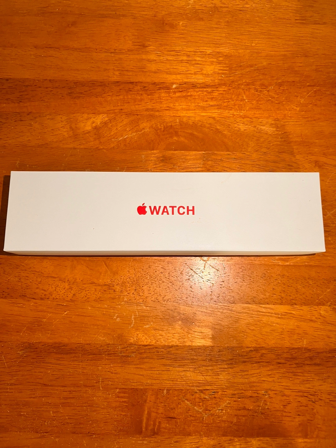 Brand new Apple Watch Series 7. 41 mm red aluminium case with red sport band. GPS cellular model. Includes watch, band, and charging cable. Designed by Apple in California.