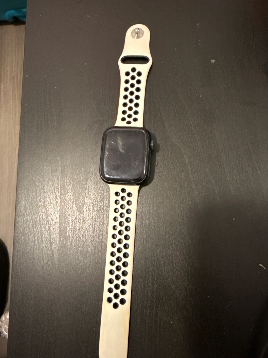 Selling an Apple Watch paired with a Nike Sport Band. It shows some signs of wear but is still functional. Great for fitness tracking and staying connected! **No charger**No box**