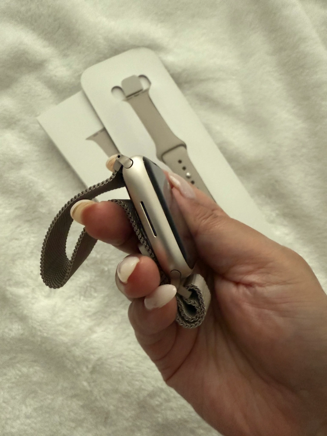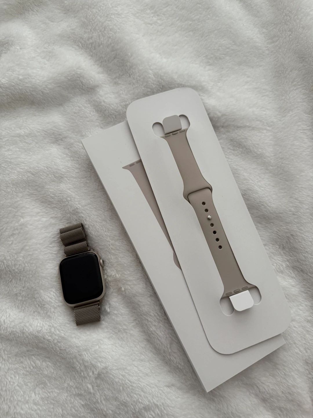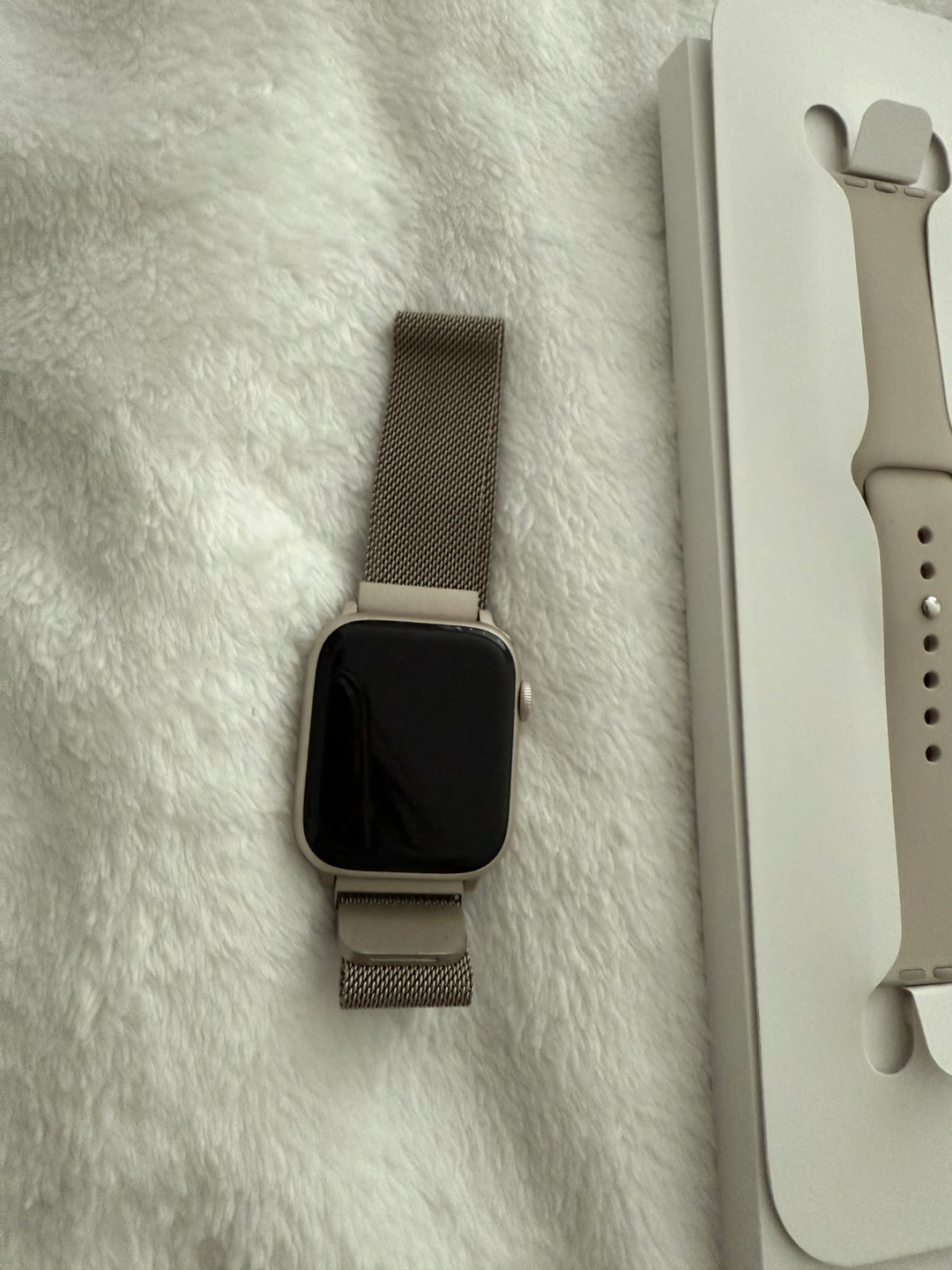 Selling my Apple Watch Series 9 [GPS 45mm] Smartwatch with Starlight Aluminium Case with Starlight Sport band. Barely used to like new condition. Bought around July of last year. Comes with the original band. Can show original digital receipt.