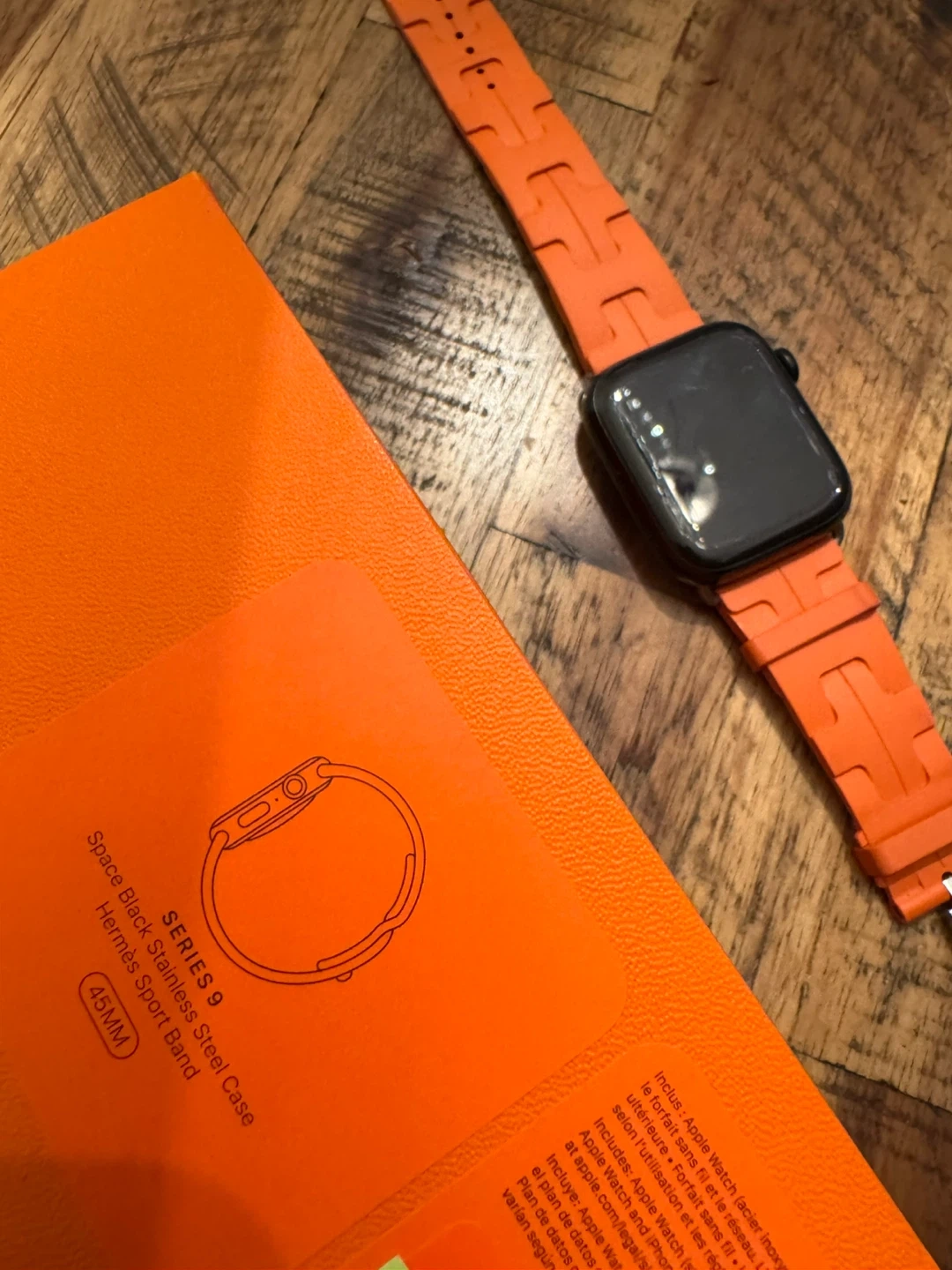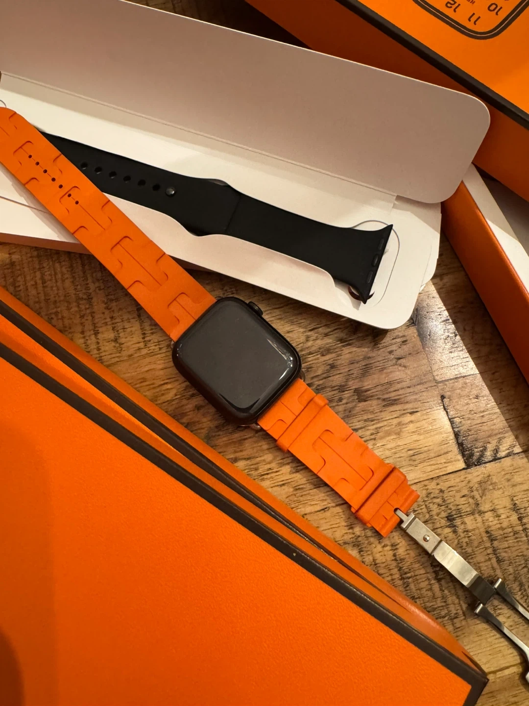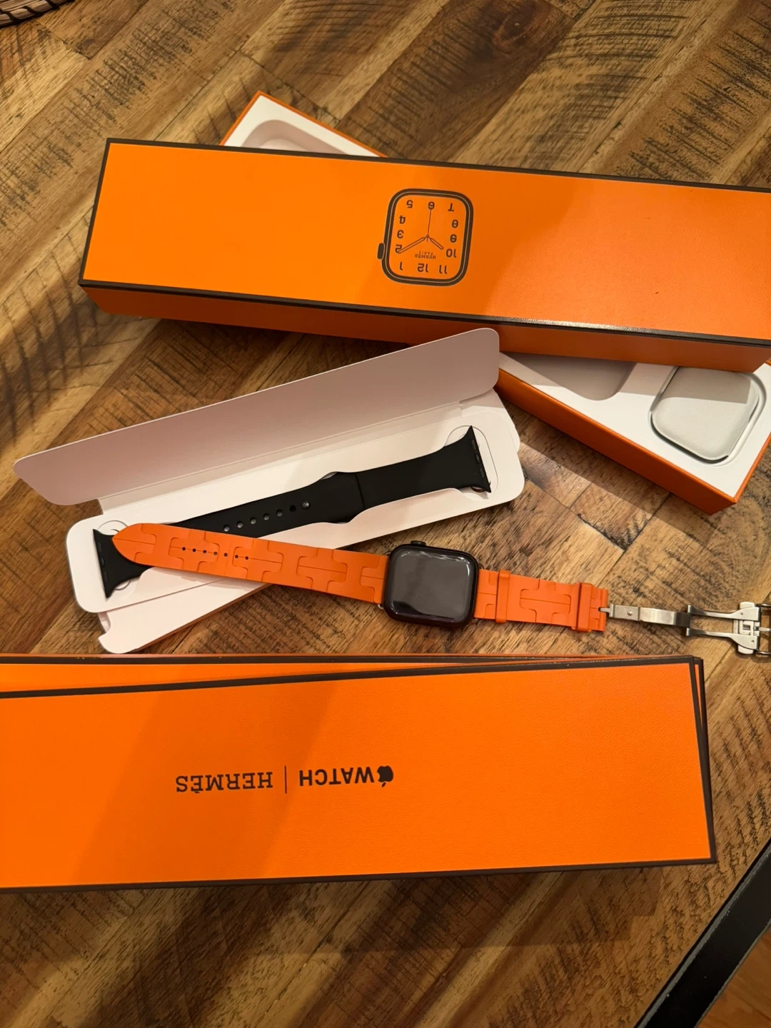 Selling an Apple Watch Series 9 Hermès edition! This is the 45mm model with a Space Black Stainless Steel Case. It comes with the Hermès Sport Band. The box is included! Also includes a sport black rubber band and charger It was used two or three times