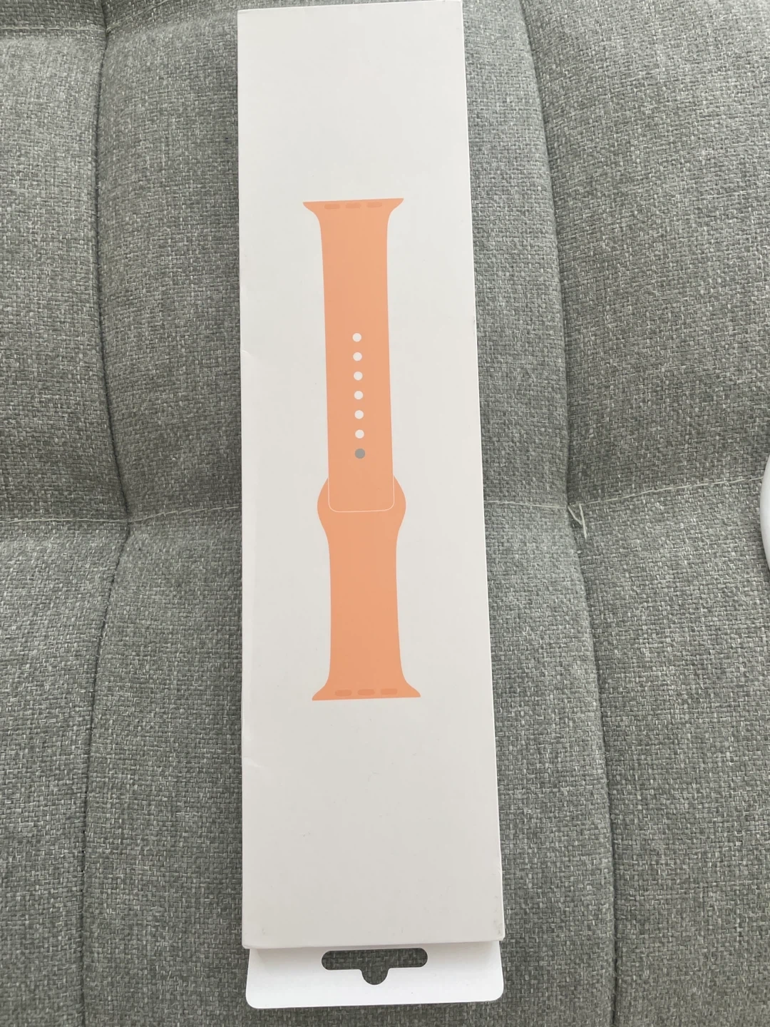 Selling an Apple Watch Sport Band. It's a peach colour and comes in its original box. The band has a stainless steel pin and is made of fluoroelastomer, making it durable and comfortable for sports and everyday wear
