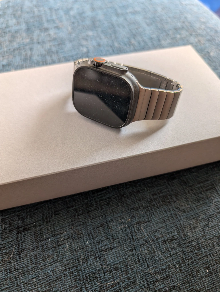 Selling an Apple Watch Ultra, complete with its original box. It's in great shape and ready for a new wrist! Included is the watch itself and the silver metal band pictured. both were purchased directly from Apple.