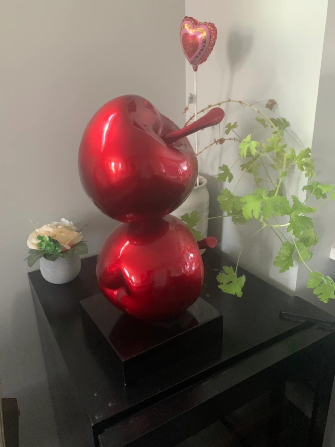 Looking to add a pop of modern art to your space? This eye-catching sculpture. The glossy red finish and playful design make it a fun and stylish addition to any room