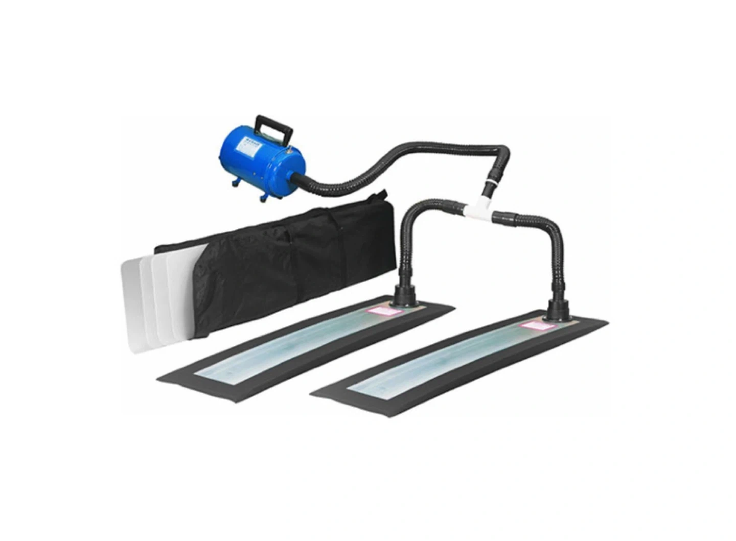 The Dual Air Dolly has two 8-1/2" x 36" platforms coupled to a powerful blower for easy moving of household appliances or office furniture. Like a hovercraft, the Dual Air Dolly uses a 1-3/4 HP motor to pump air through the platform bottoms to move loads weighing up to 750 lbs. Motor end caps are virtually unbreakable.