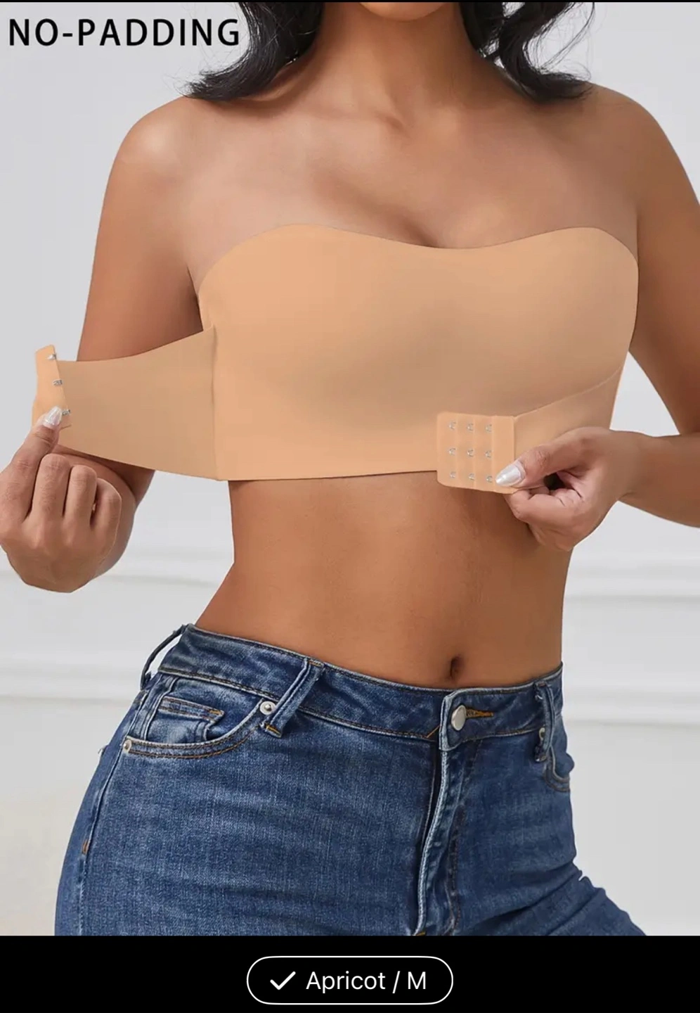 15 for both. or 8each. Selling a strapless bra in apricot colour. It's a size medium. Please see the size guide in the photos to determine your correct size. There's no steel ring or chest pad, so it's comfy!