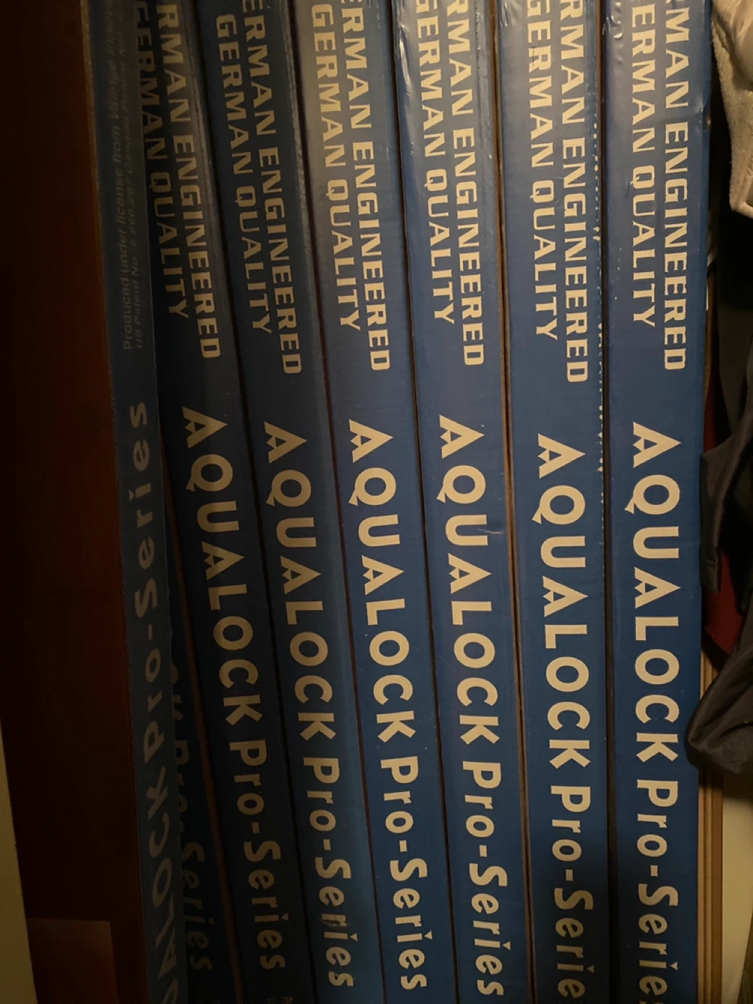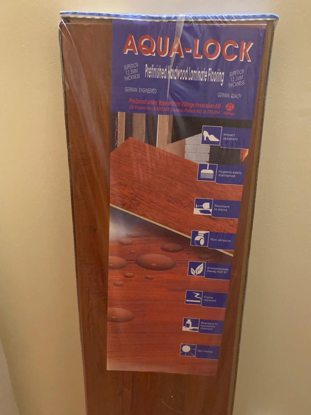 Upgrade your bedrooms, kitchen or basement with these German engineered laminate flooring! Selling 21 boxes of new Aqua-Lock Pro-Series laminate flooring in the Red Cherry colour. This is German engineered laminate flooring, superior 12.3mm thickness. Each package covers an area of 1.5187 square meters, with 10 pieces per package. 21 boxes should cover about 31.9 sq metres or 333 sq feet. It's impact resistant, hygienic, resistant to stains, non-abrasive, and non-fading. You can have all 21 boxes for just $300!