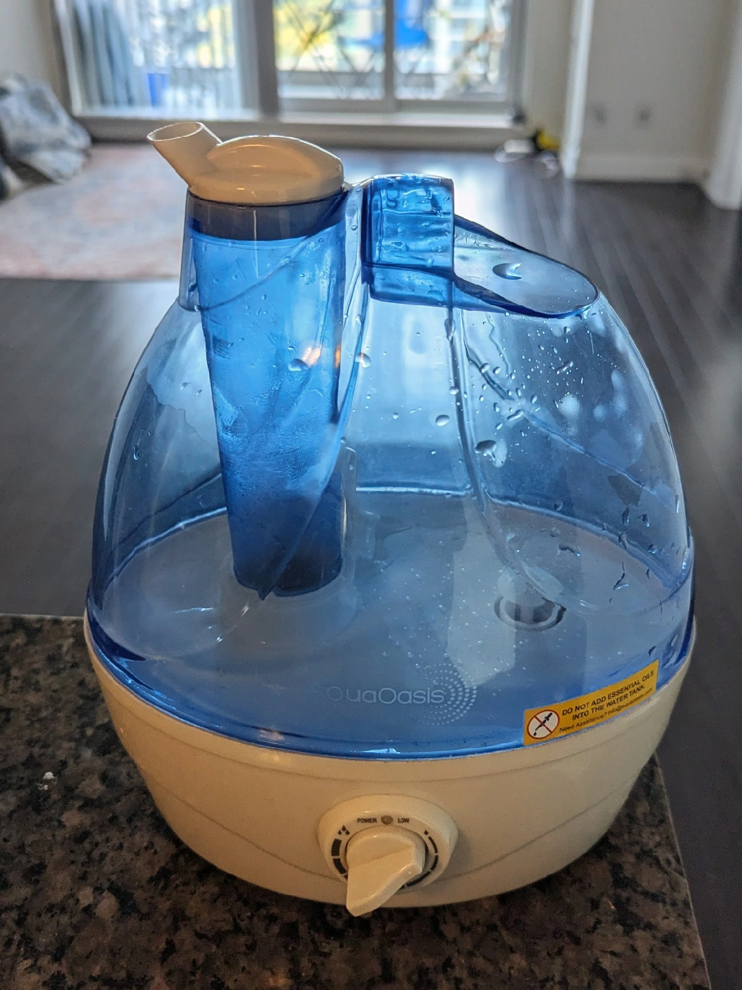 Keep your home feeling fresh with this AquaOasis cool mist humidifier! It's in great shape and ready to use. Just a friendly reminder from the unit: DO NOT ADD ESSENTIAL OILS into the water tank