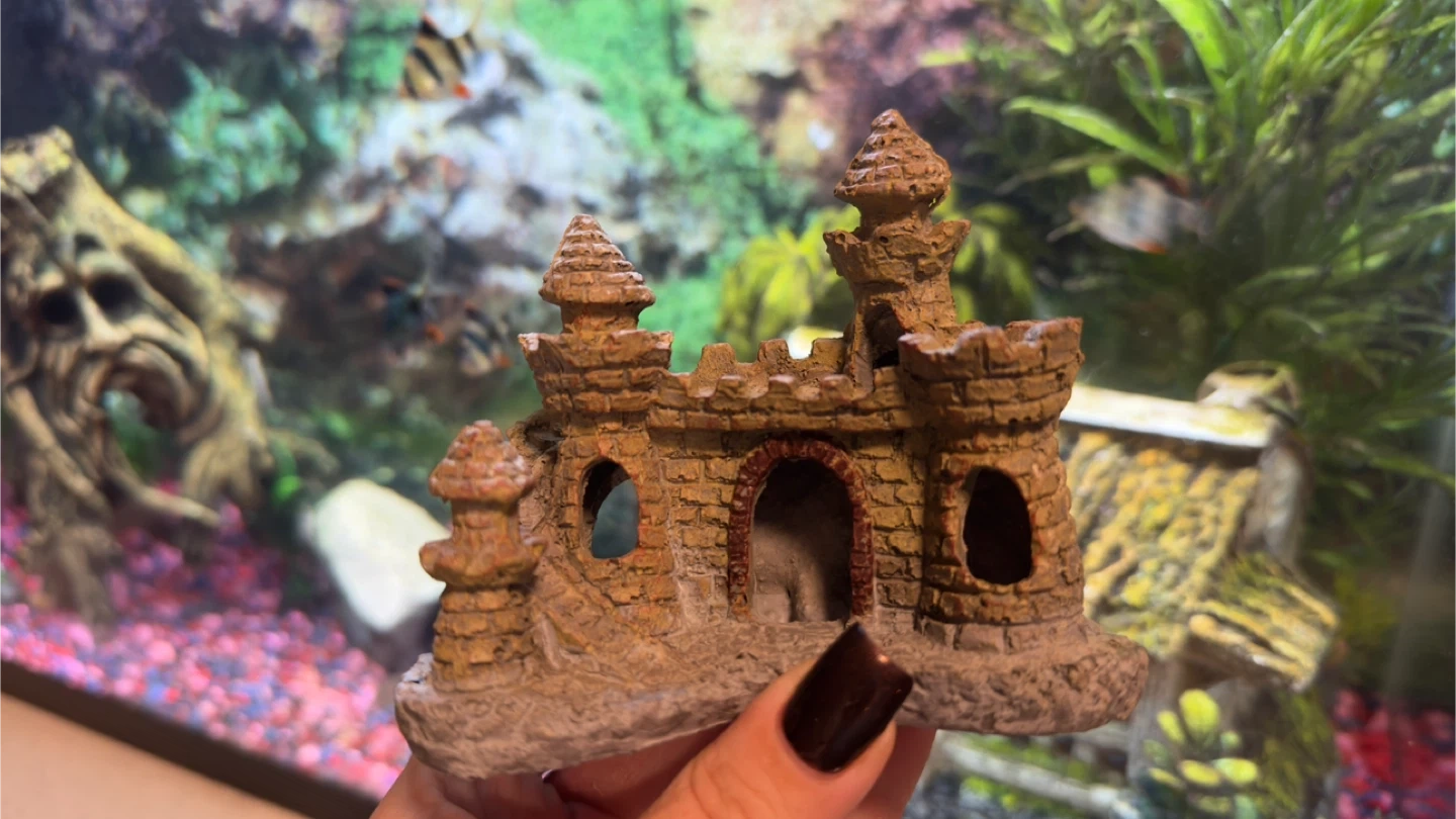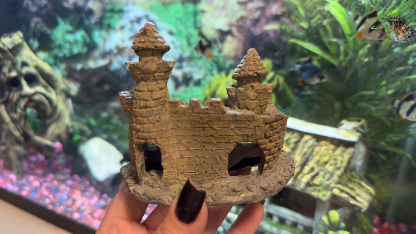 Add a touch of medieval charm to your aquarium with this cute castle decoration! It's in great shape and ready to provide a fun hiding spot for your fishy friends