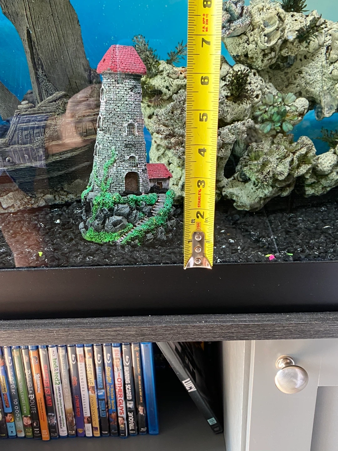 Selling some aquarium decorations! There's a cute lighthouse and a little barrel to add some character to your fish tank. The lighthouse stands about 8 inches tall, perfect for adding a bit of height to your aquascape