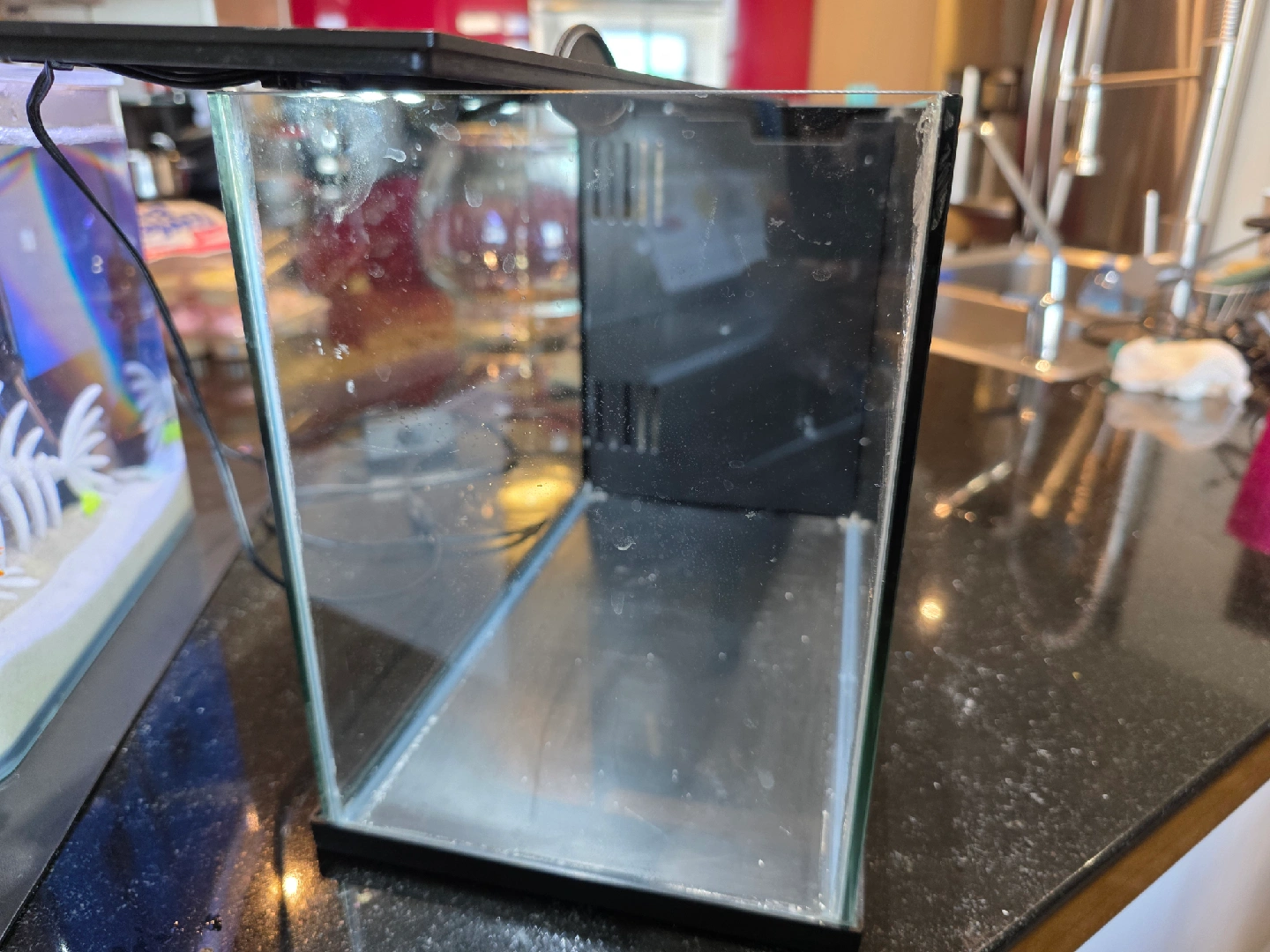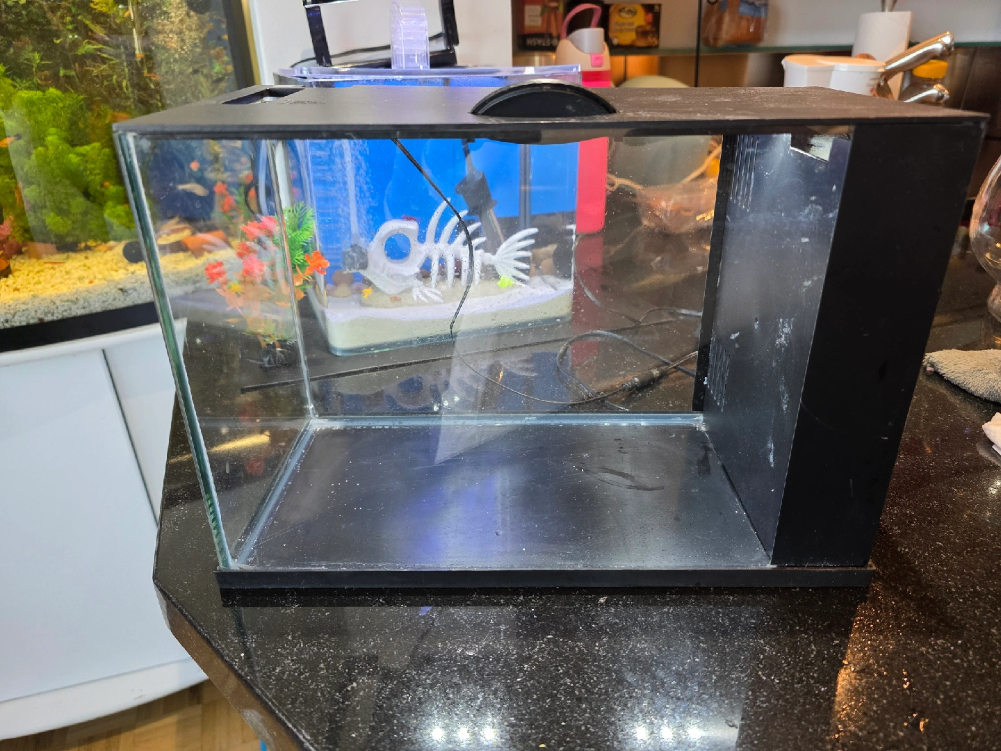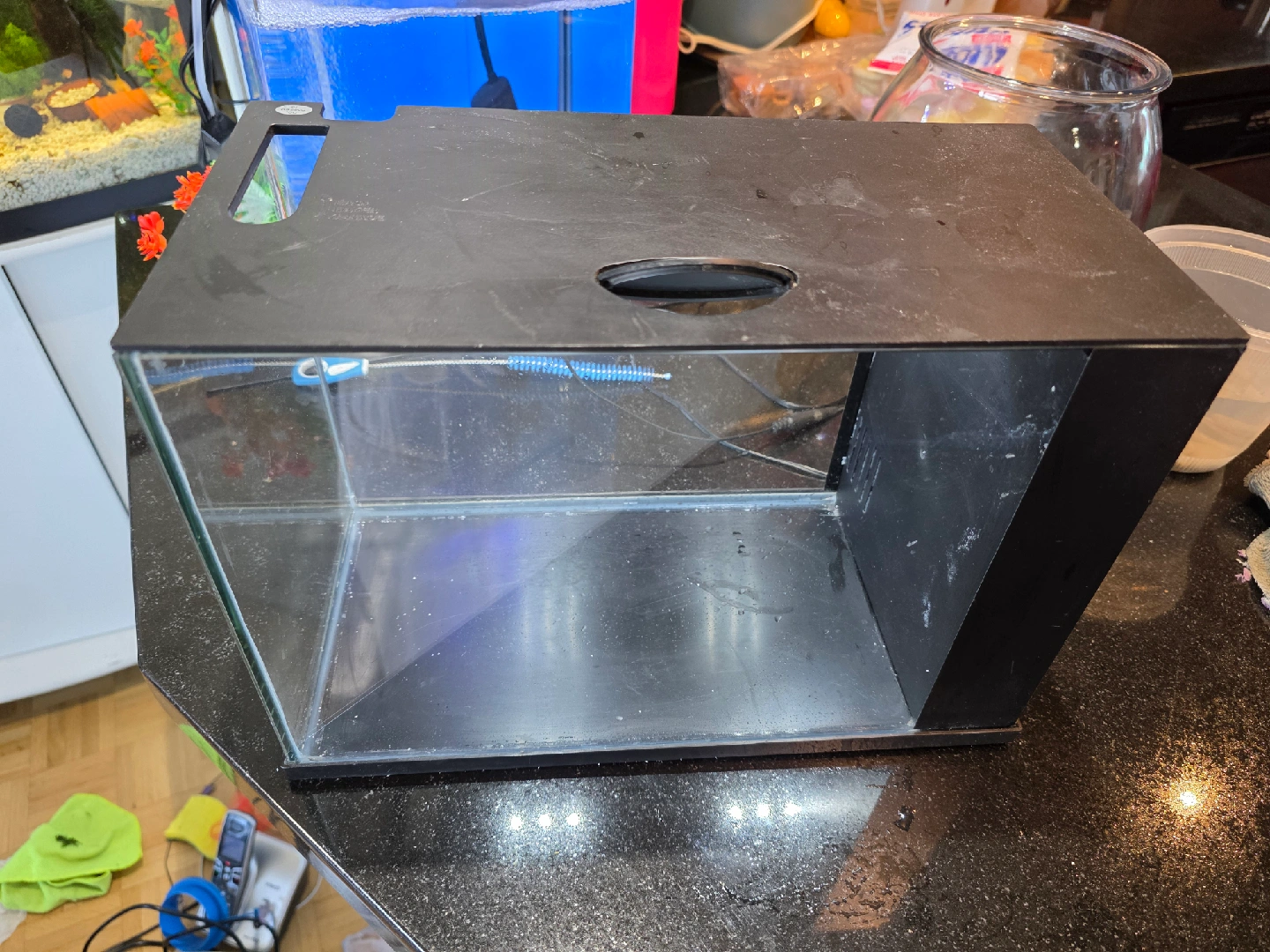 Selling a used aquarium fish tank. It comes with a lid and built-in filtration system. It's in great condition and ready for a new home for your fishy friends!