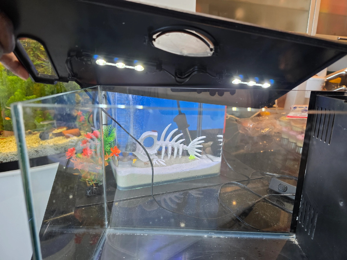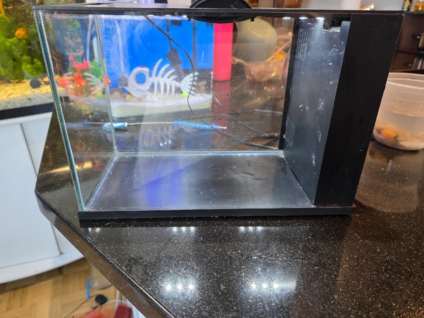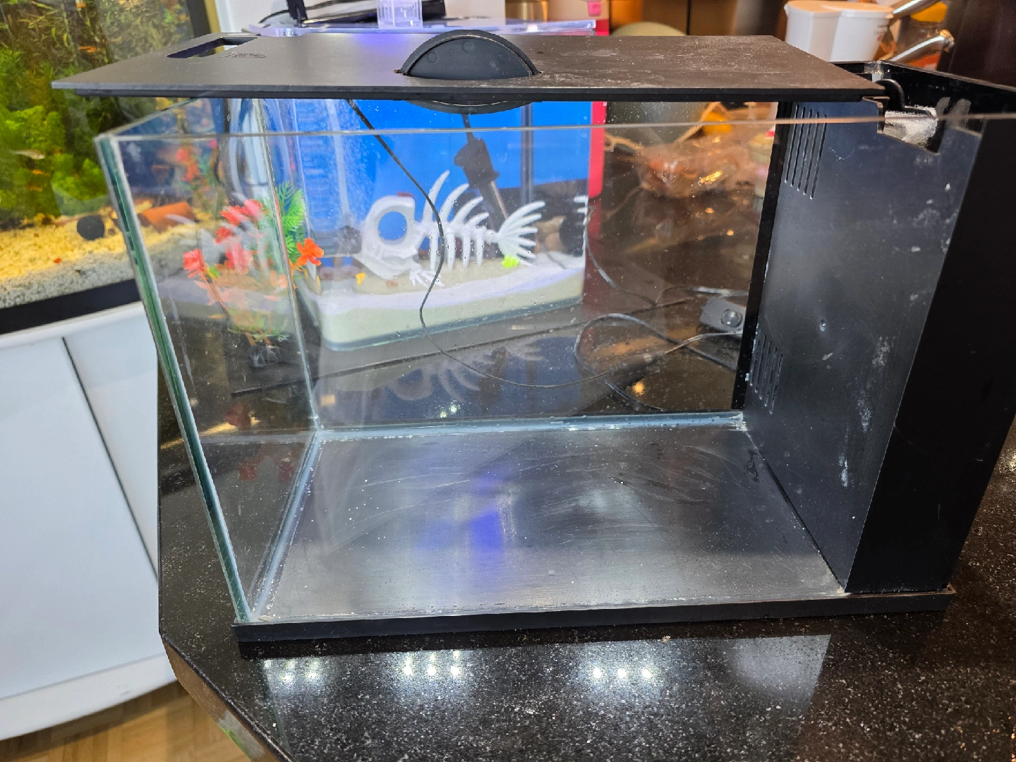Selling a used aquarium fish tank. It comes with a lid and built-in filtration system. It's in great condition and ready for a new home for your fishy friends!