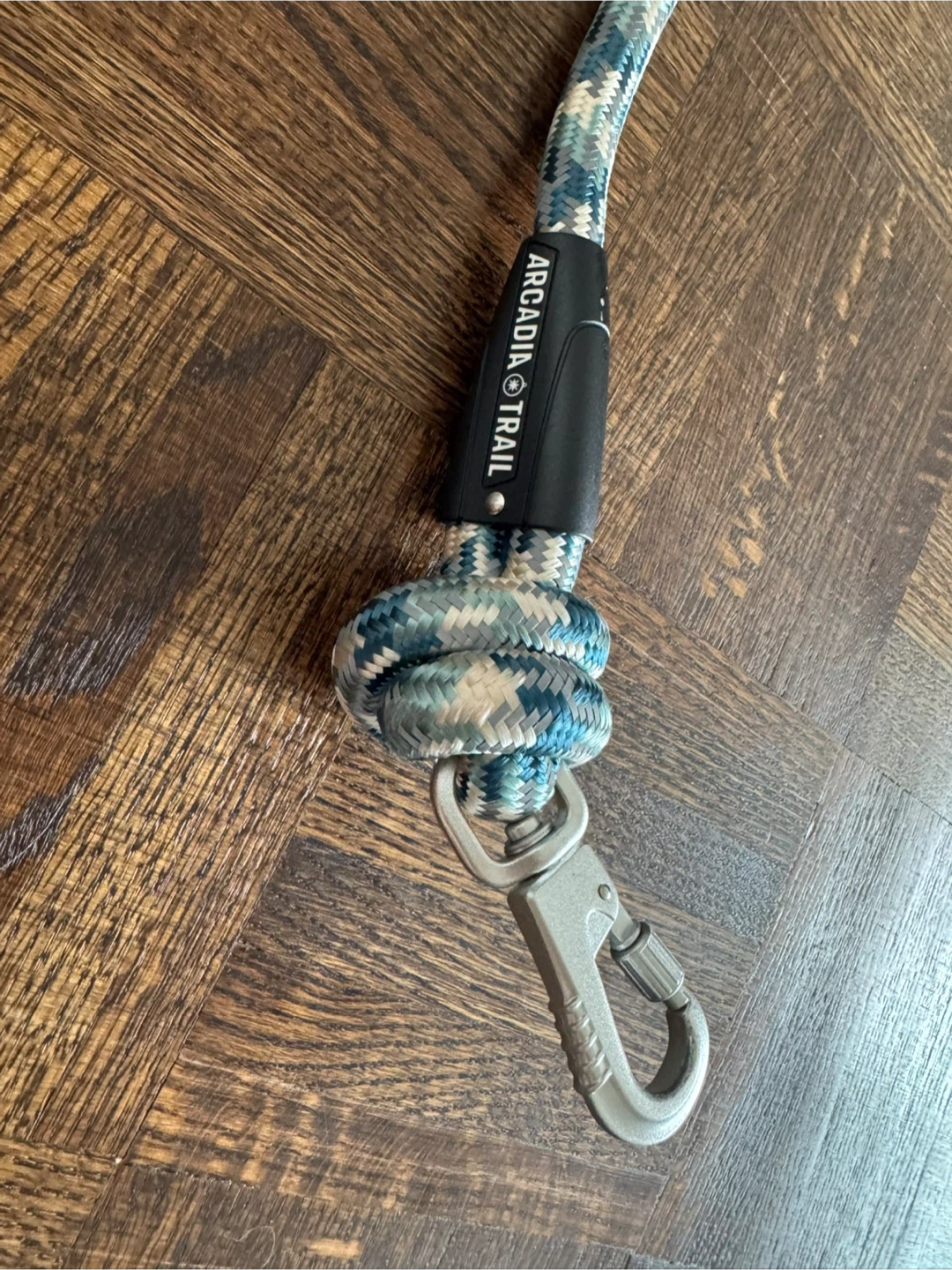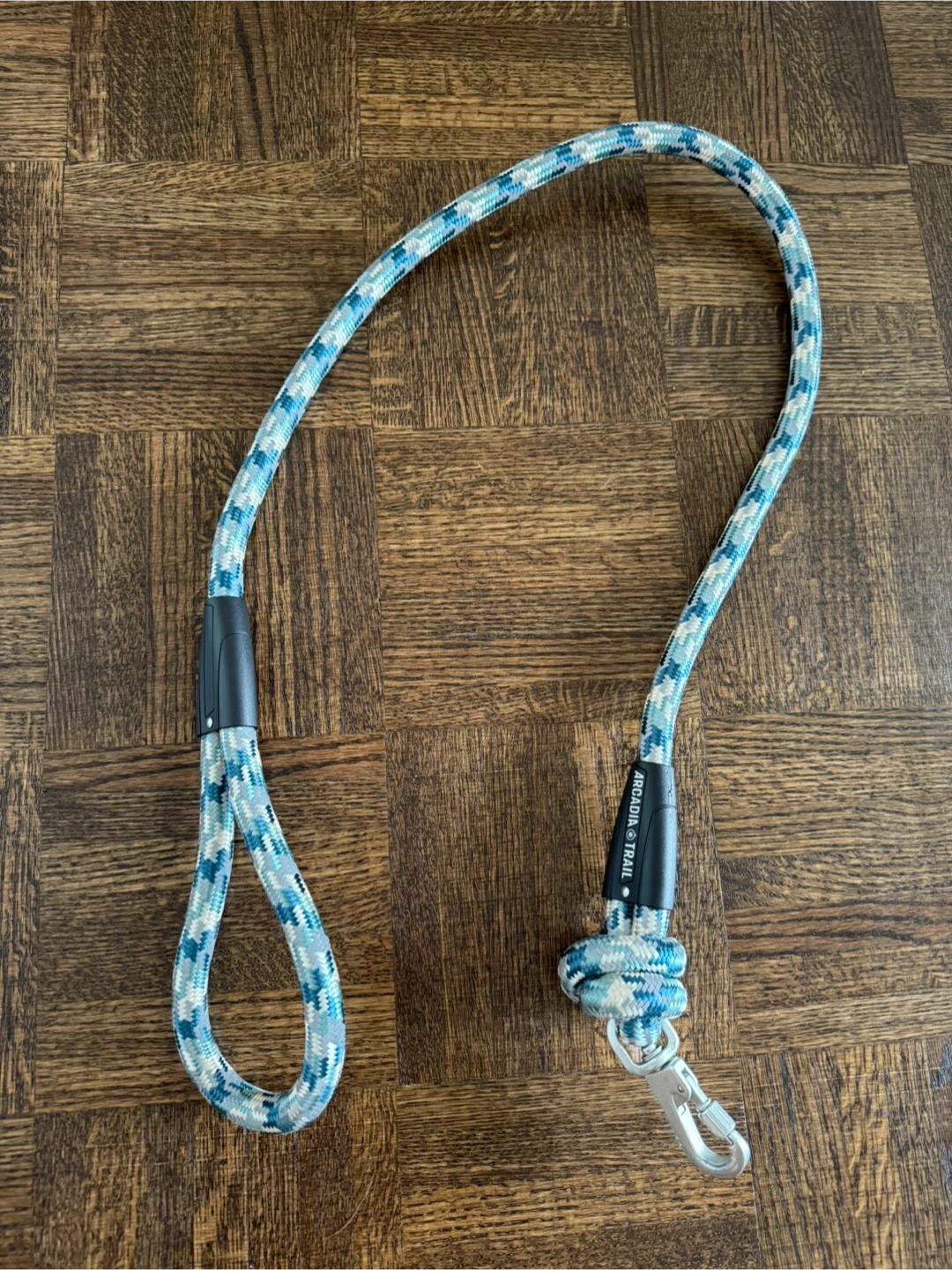 Selling an Arcadia Trail dog leash in a blue camo pattern. It's in great shape and ready for your furry friend's next adventure! This leash features a durable rope design and a secure clip.