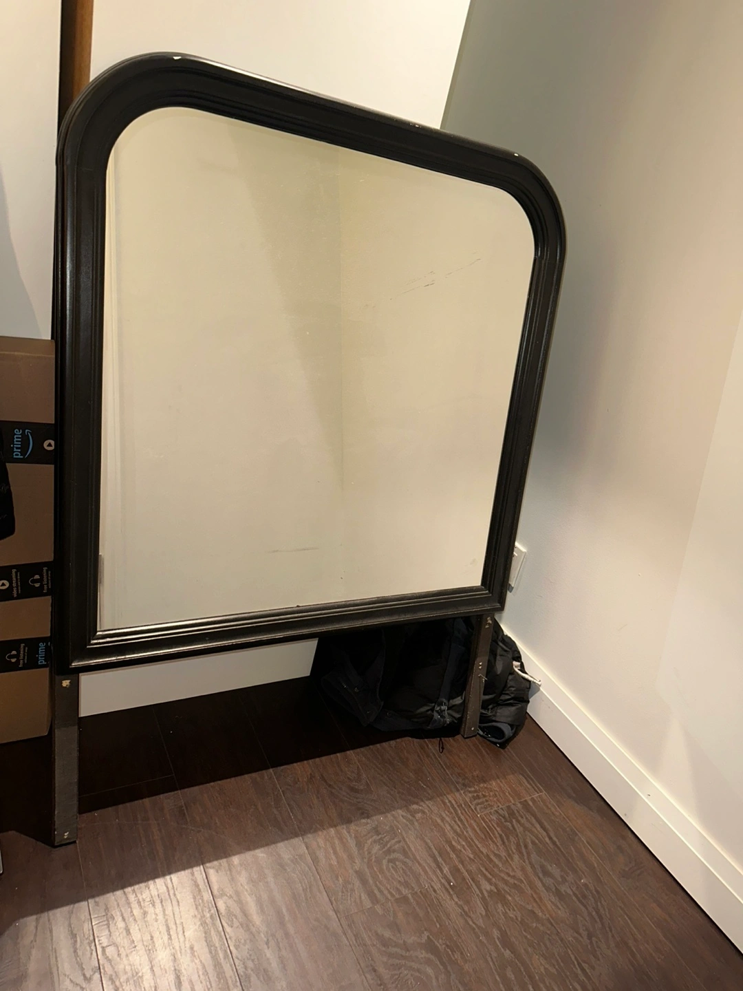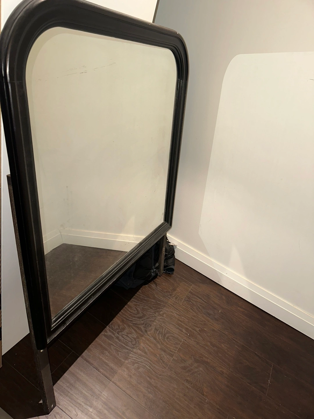 Selling a stylish arched mirror with a black frame. It's in great condition and would look lovely in any room. The mirror has a unique design that adds a touch of elegance to your home decor