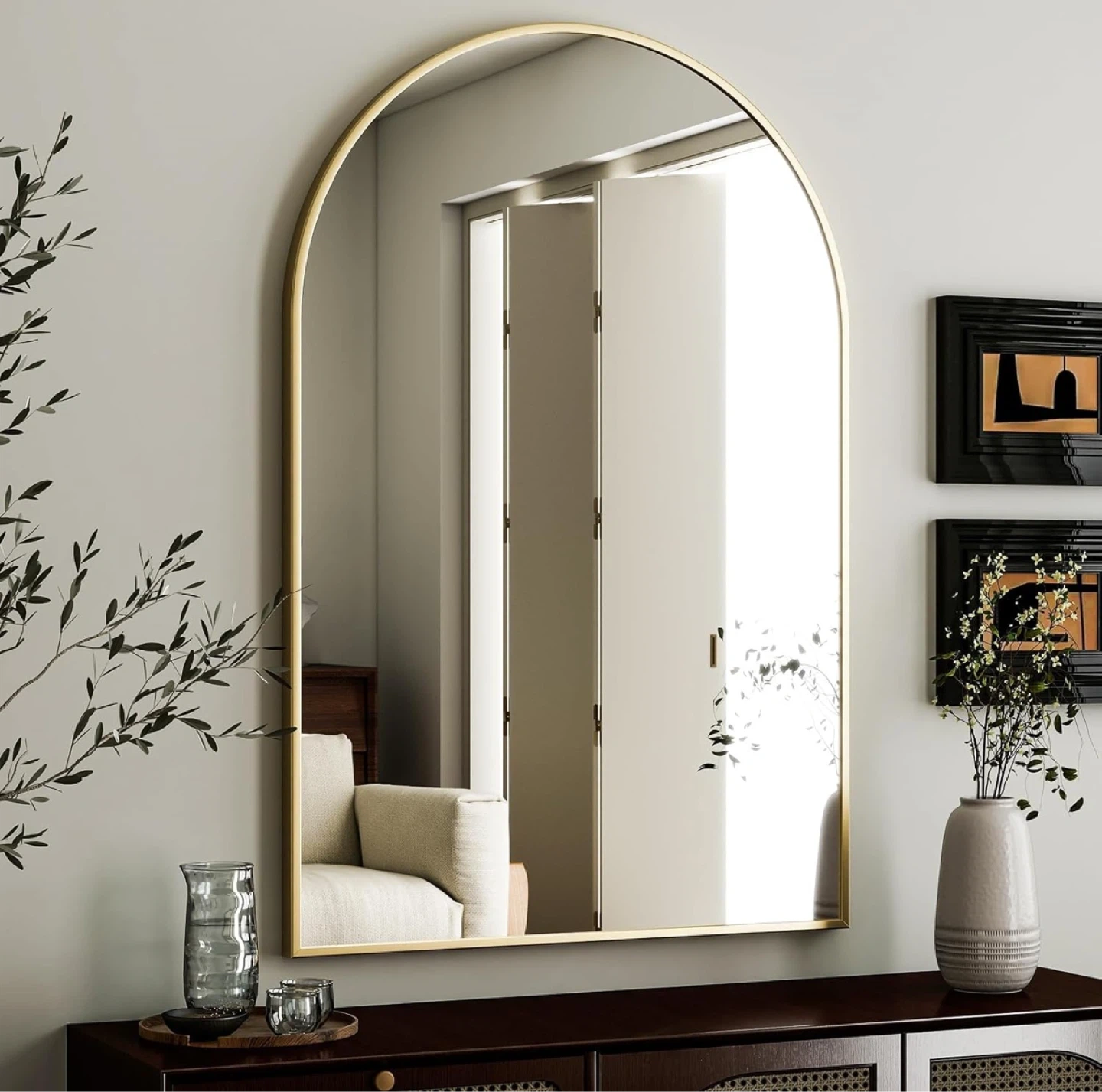 Selling a beautiful arched gold mirror! It would look great in any room of your house. The gold frame adds a touch of elegance and sophistication. Bought off of Amazon for $74.99 - selling for $50 - Brand New, no scratches!