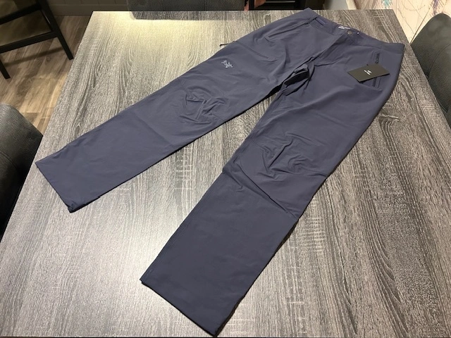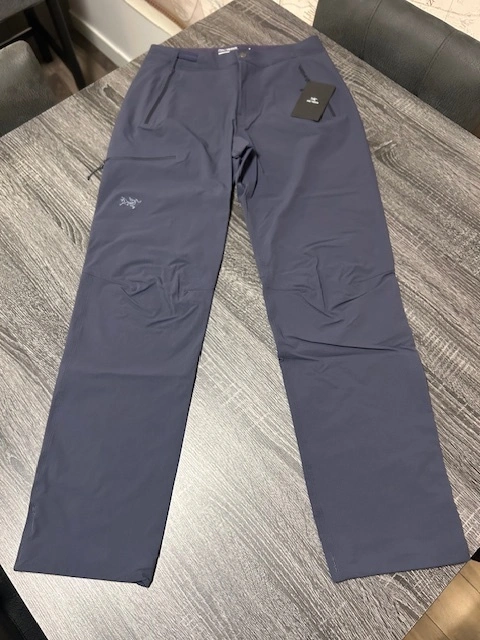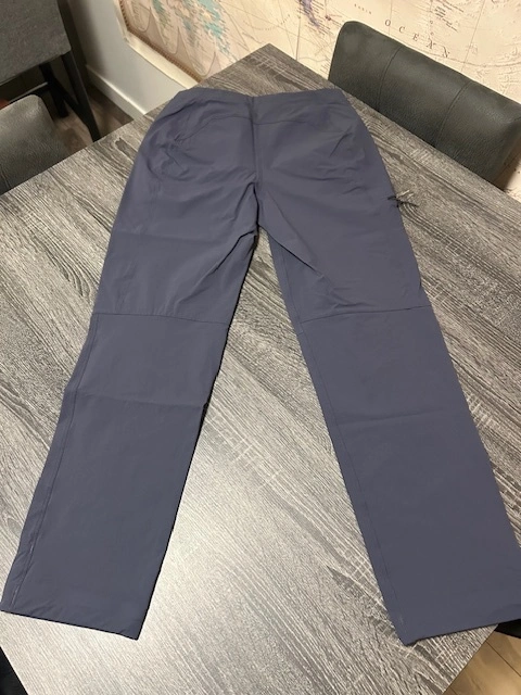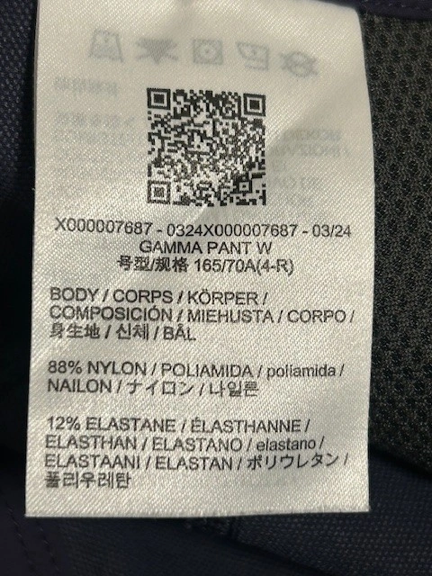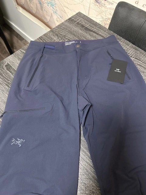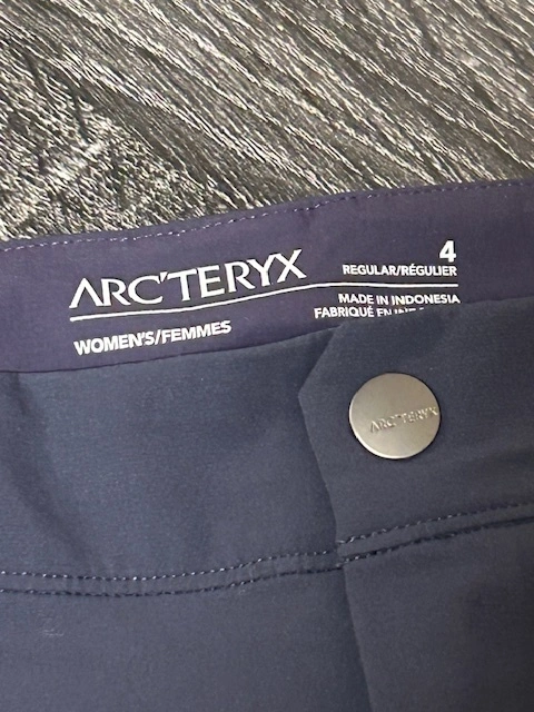 Arc'teryx Gamma Pant -Women's sz 4 Reg -Black Saphire (Like New) (MSRP $240) The Gamma Pant – our most versatile softshell pant – continues to evolve and remains the go-to for anyone requiring durability, wind protection, climate control, stretch, and all-mountain performance. The hardwearing, breathable Fortius DW 2.0 softshell has a soft brushed backer and is made with recycled nylon. The waistband’s low-profile adjuster rides comfortably under a harness or hipbelt, the cuff closes with drawstring to seal out debris, and pockets are secure and accessible. Product tip: This product is available in three inseam lengths – Short (S), Regular (R), and Tall (T). Please make sure to reference our sizing chart to determine your correct size. Features & Specs Technical features Weather resistant Breathable Durable Wind resistant Versatile Water repellent Construction Fortius™ DW 2.0 is durable, has good stretch and next-to-skin comfort Cuff & Sleeves configuration Drawstrings at cuffs seal out trail debris, preserve line-of-sight to feet while climbing Design & Fit Trim fit ensures better line of sight while climbing Garment Inseam: Size 4-S (Short) is 28.5"/72.5cm, Size 4-R (Regular) is 30.5"/77.5cm, Size 4-T (Tall) is 34"/85cm — Inseam varies by size Fabric treatment FC0-DWR (Durable Water Repellent) finish repels moisture Patterning Articulated patterning for unrestricted mobility Gusseted crotch for comfort and freedom of movement Pocket configuration Two hand pockets with zippers Harness friendly zippered thigh pocket Sustainability Contains materials that meet the bluesign® criteria Body - bluesign® approved material, recycled content Lining - bluesign® approved material PFAS (Per- and polyfluoroalkyl substances) Compliant Waist & Belt configuration Low-profile ladder lock waist adjuster with offset buckle for a secure fit and comfort under a harness Size 00, 0, 2, 4, 6, 8, 10, 12, 14, 16 Weight 300g / 10.6 oz Fit Fitted Sizing chart Women's sizing chart & fit guide - pants Activity Alpine/Rock/Hike Model X000010033 Manufacturing facility Youngone (CEPZ) LTD, Bangladesh Fit & Sizing Fit: Fitted Fit: Fitted Our trimmer fit is patterned to stay close to the body through the chest, waist, hip, and thigh. Its low profile eliminates bulk, moves with the body, and fits comfortably under outer layers. View size chart Materials & Care Materials Body: RecNylon DBL Weave Solid, 186gsm - 88% Nylon, 12% Elastane Origin of fabric: TAIWAN, CHINA Origin of dyeing: TAIWAN, CHINA May release plastic microfibres into the environment when washing Care Machine wash low Tumble dry normal low Do not bleach Wash dark colours separately Do not dry clean Iron low Do not use fabric softener Double rinse
