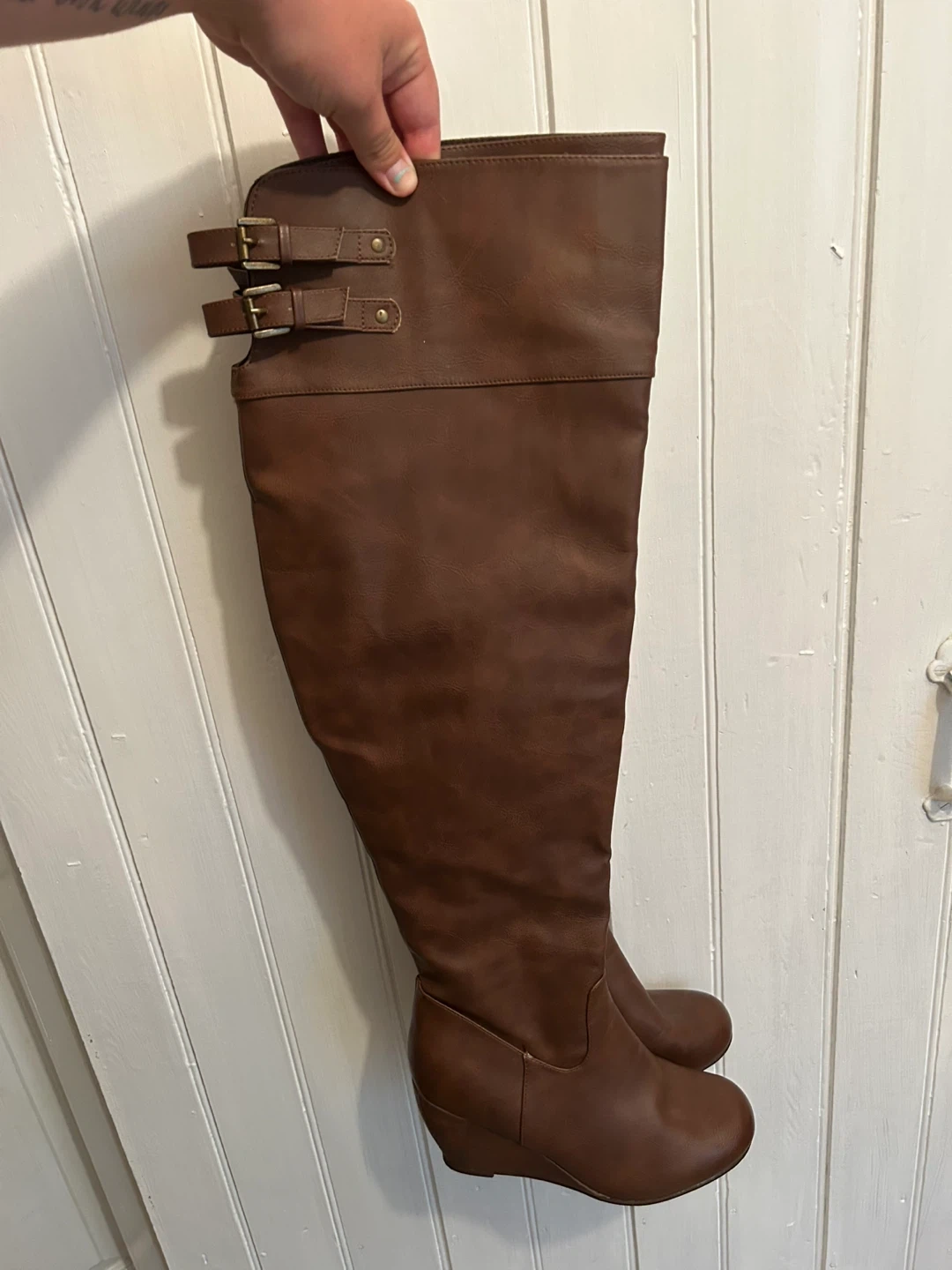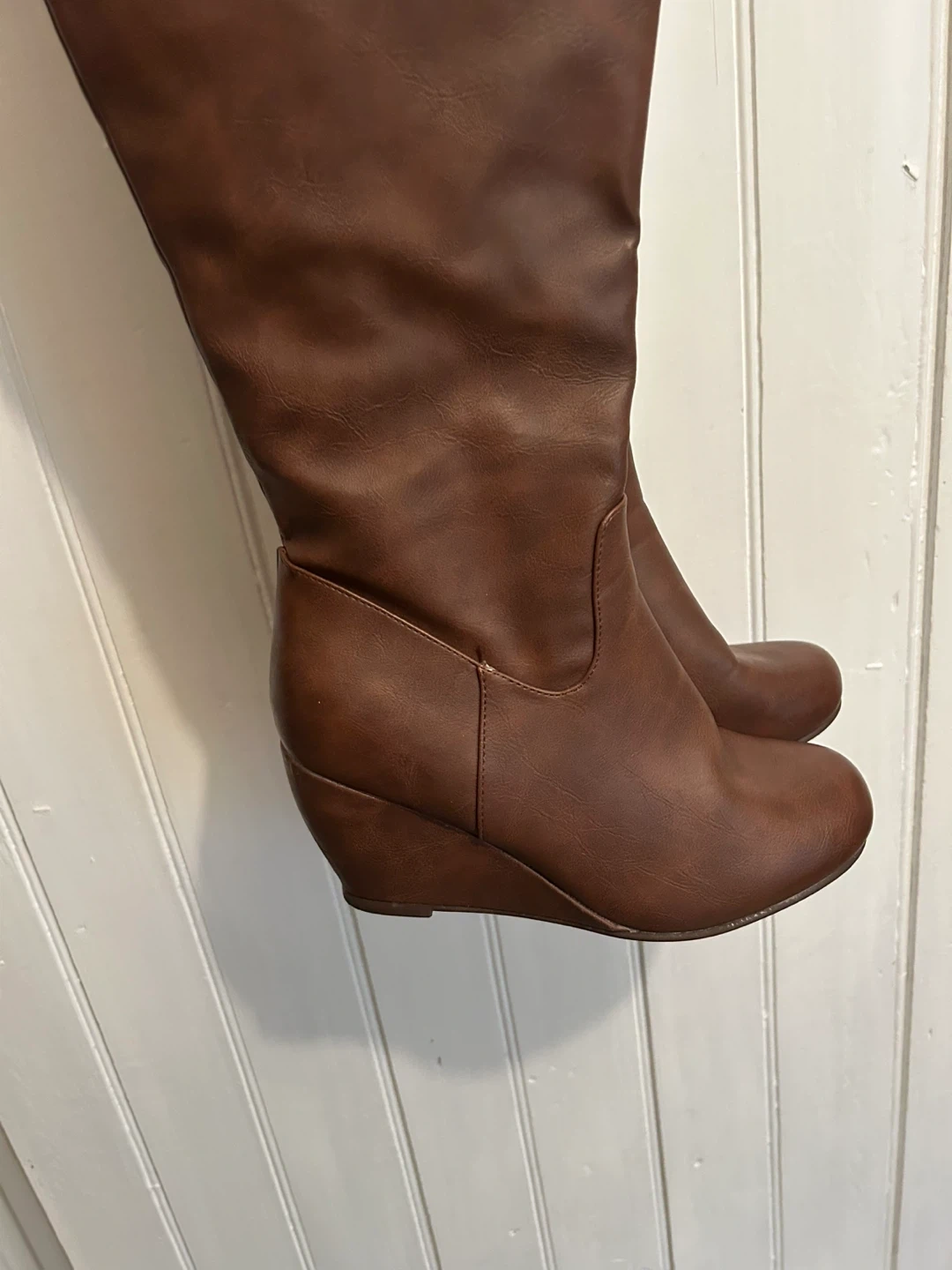 Ardene brand. Knee high wedge heeled boots. Brown in colour. Size women’s 10, thinner calf. Brand new condition $10 Pickup between kincardine & ripley or I can arrange delivery in port Elgin-Owen sound, walkerton-Durham, wingham-listowel-kw/cambridge, goderich-bayfield, Woodstock & Arthur-Orangeville-Newmarket-Lindsay-Peterborough AREAS.