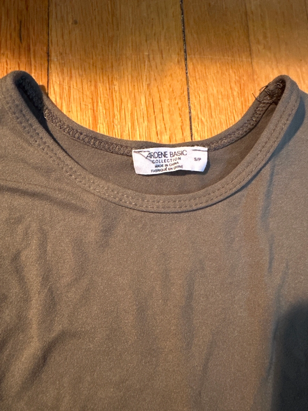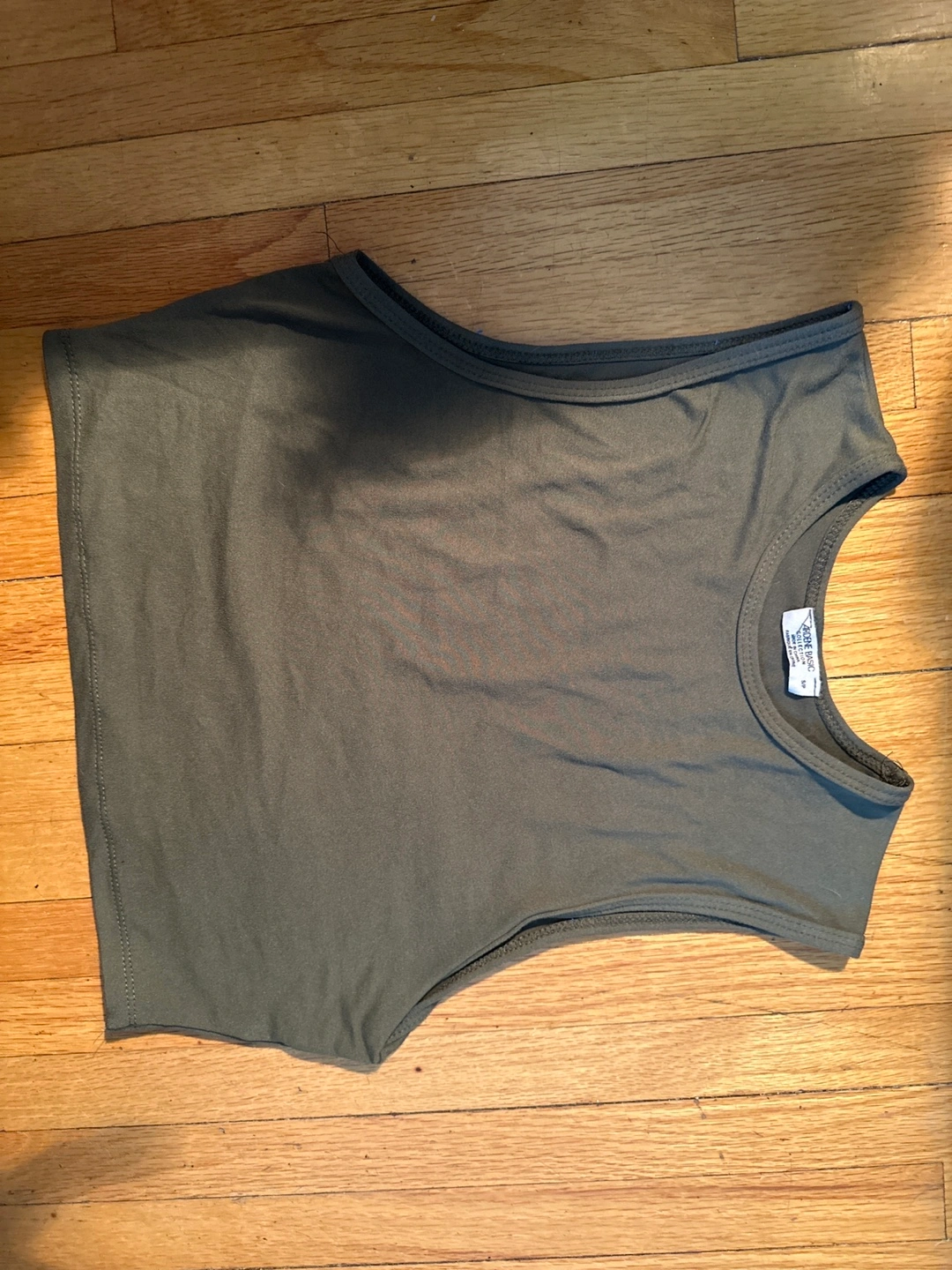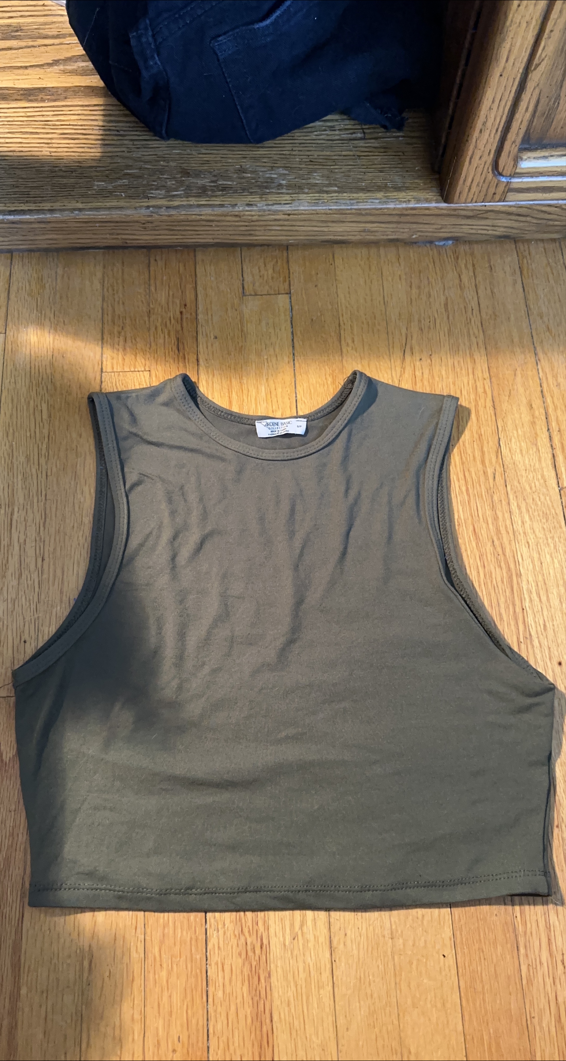 Here's a cute olive green tank top from Ardene's Basic Collection! It's a size small and made of a comfy material. Great for layering or wearing on its own during warmer weather
