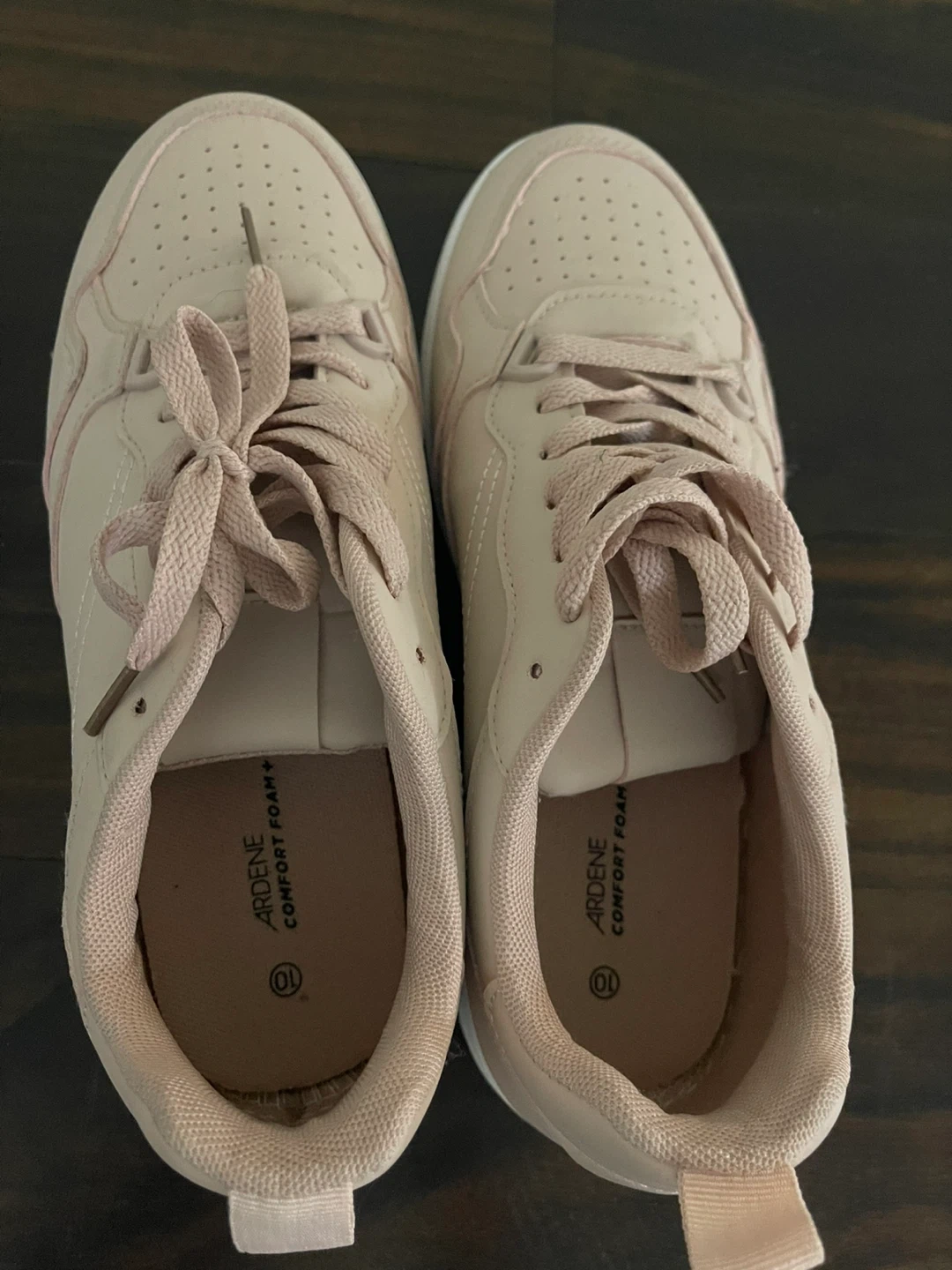 Selling a pair of Ardene sneakers in a lovely blush colour. They feature Comfort Foam+ insoles and are a size 10. Perfect for everyday wear!