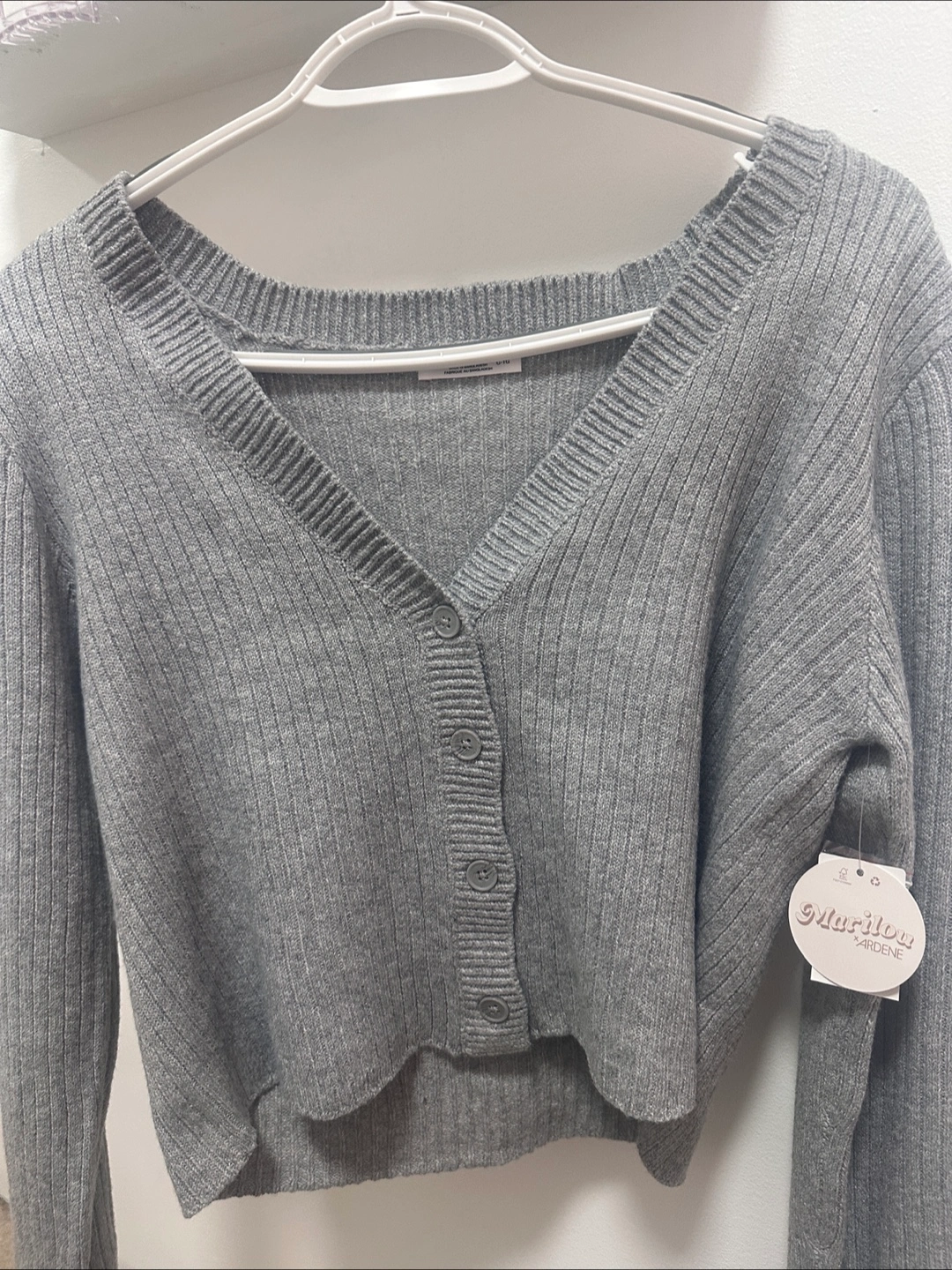 This is a lovely grey cardigan from Ardene in size L/XL. It's in great condition and ready for a new home! The material is soft and comfortable, perfect for layering. It's a versatile piece that can be dressed up or down. Perfect for the Canadian weather!