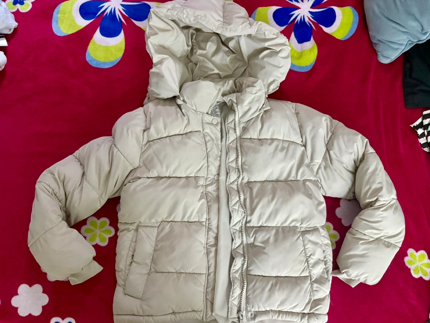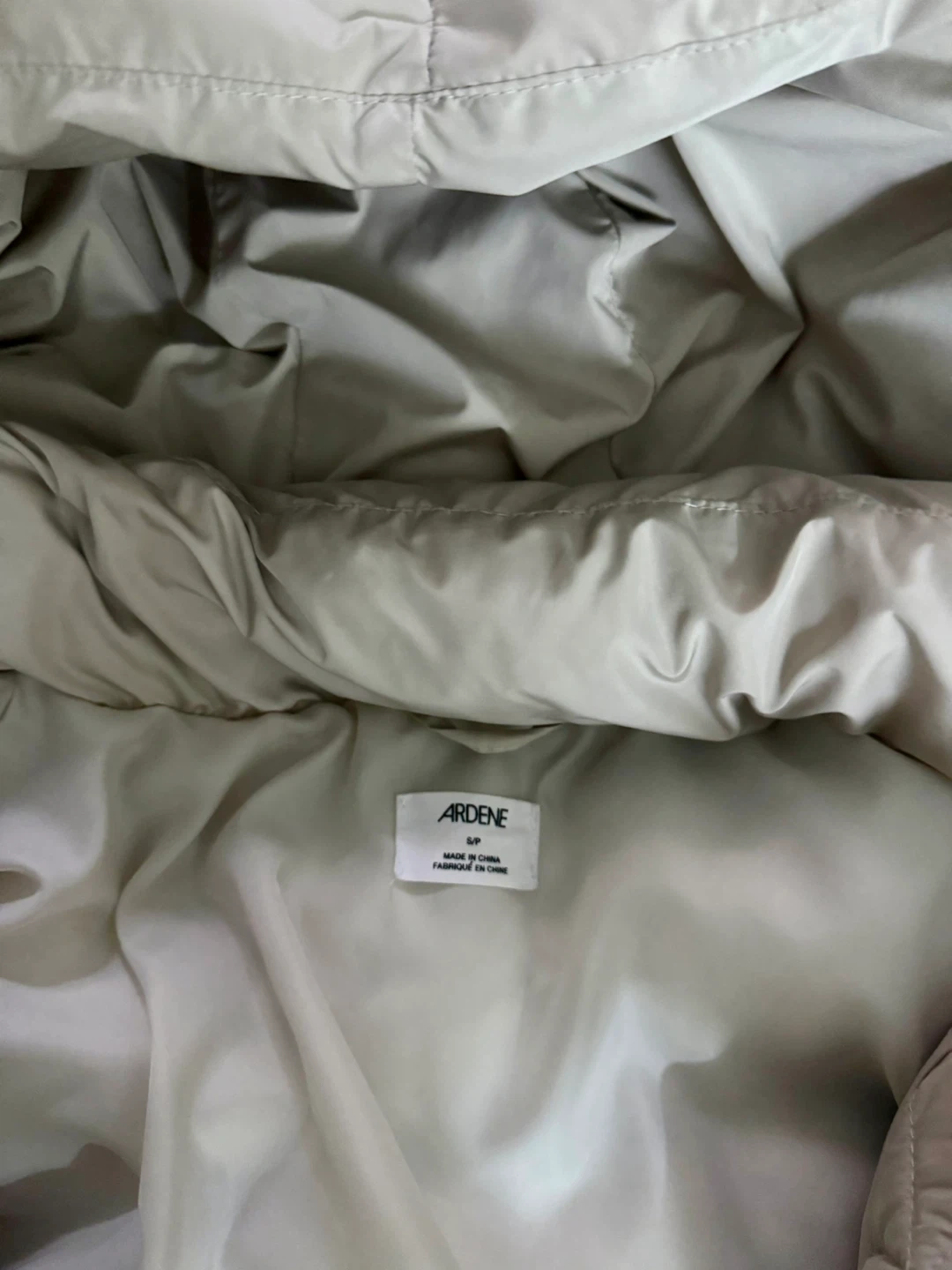 Cozy up in this stylish Ardene puffer jacket! It's a lovely beige colour and size S/P. Perfect for keeping warm on those chilly days!