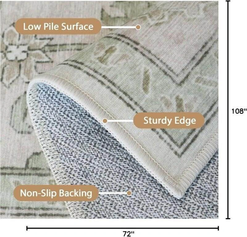 New, Open Box. Area Rug 10x14 for Living Room, Non-Slip Machine Washable Retro Rug, Low Pile Print Rug for Bedroom Dining Room Home Office
