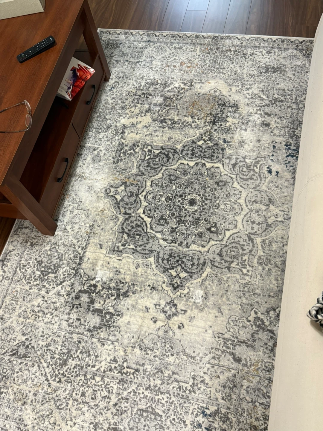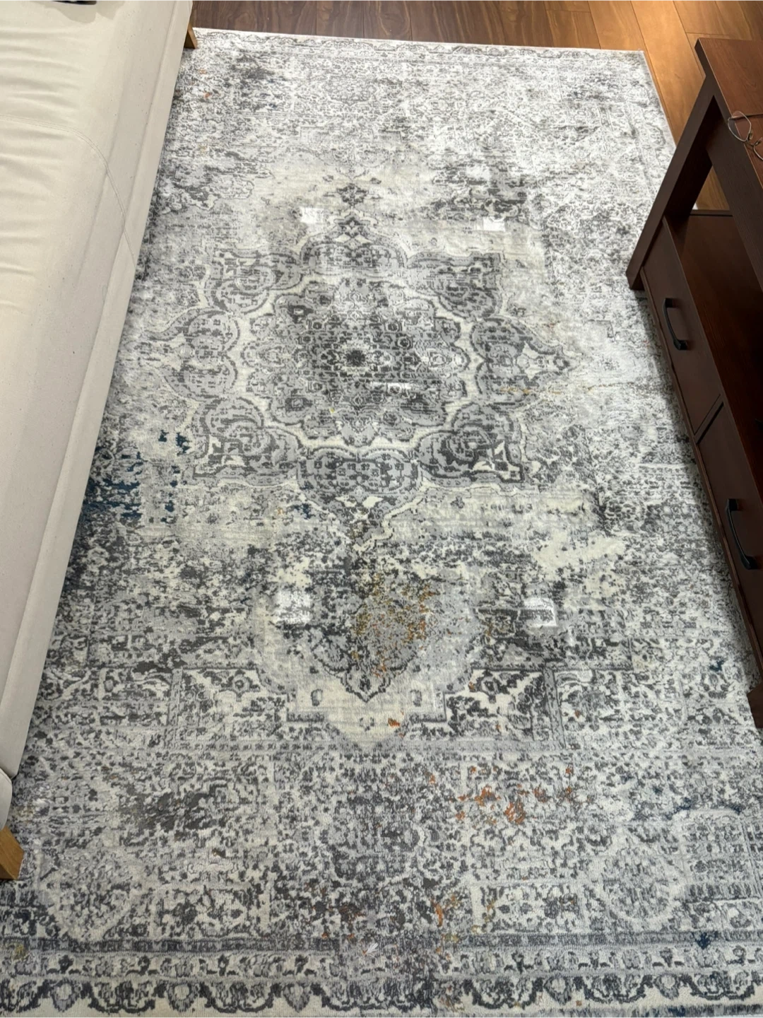 Selling a patterned area rug in shades of grey. It would look great in a living room or bedroom! (152*213 cm)
