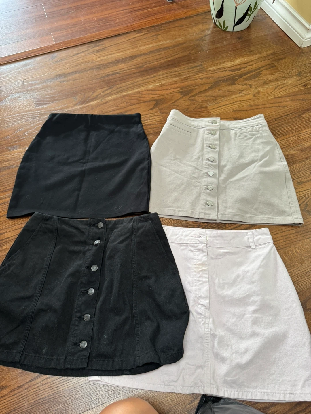 Aritizia Skirts ( with exception of light purple skirt) 1- SUNDAY BEST black pencil skirt Size S 2- wilfred free Beige skirt size 2 3 - Wilfred Free Black A like skirt size 6 4- UO BDG light purple Skirt Size M Take all for 30!