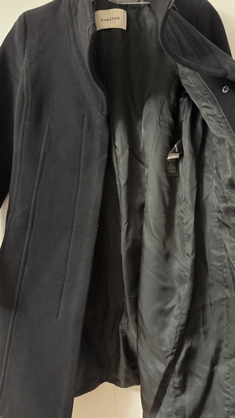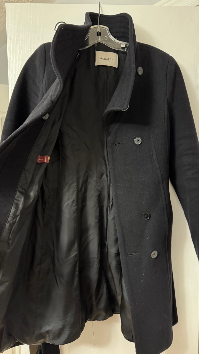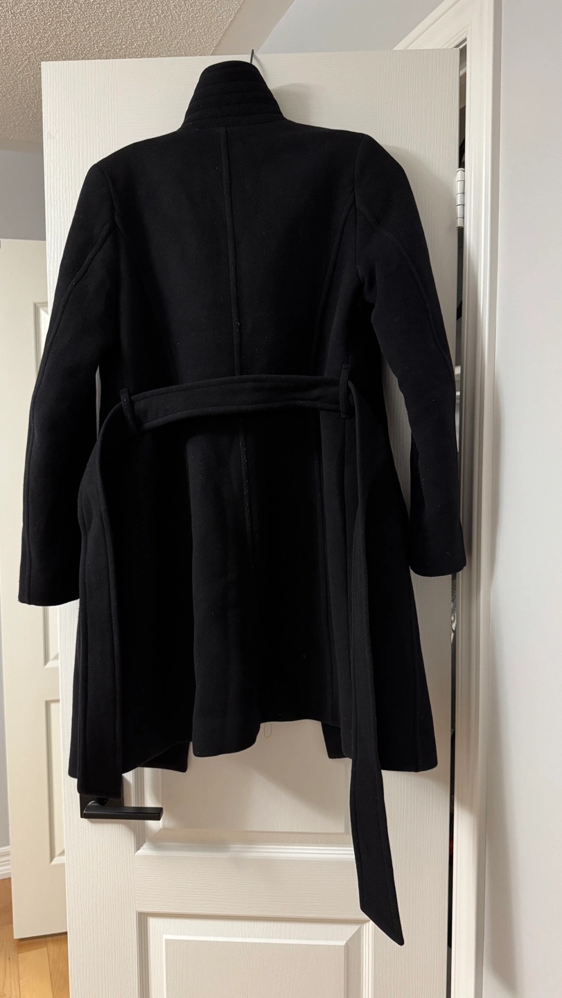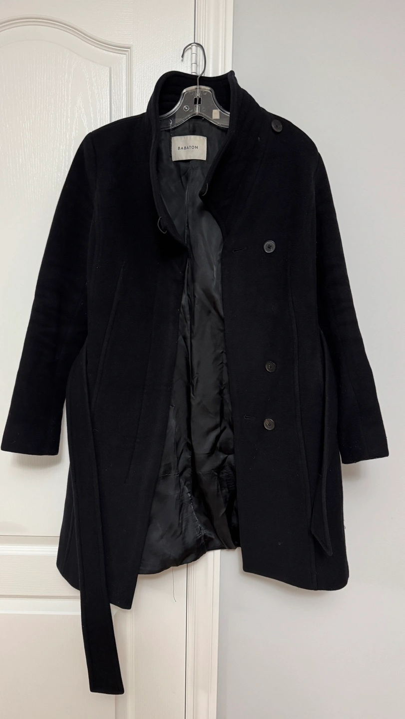 Aritzia Babaton Women's black wool peacoat. Size small. Features a mandarin collar, a belted waist, and button closure. Long sleeves. Wife doesn’t want it anymore. Meet up in Vaughan!