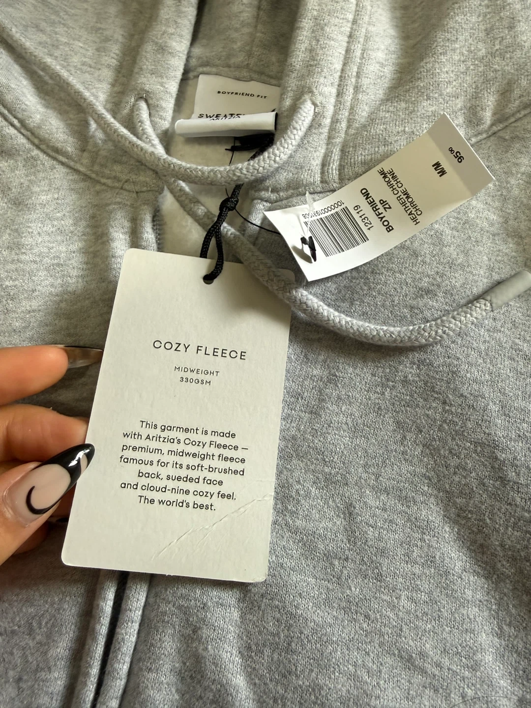 Selling a brand new Aritzia Cozy Fleece Boyfriend Zip Hoodie in Heather Chrome, size M/M! This garment is made with Aritzia's Cozy Fleece - a premium, midweight fleece famous for its soft-brushed back, sueded face, and cloud-nine cozy feel. Originally bought for $95