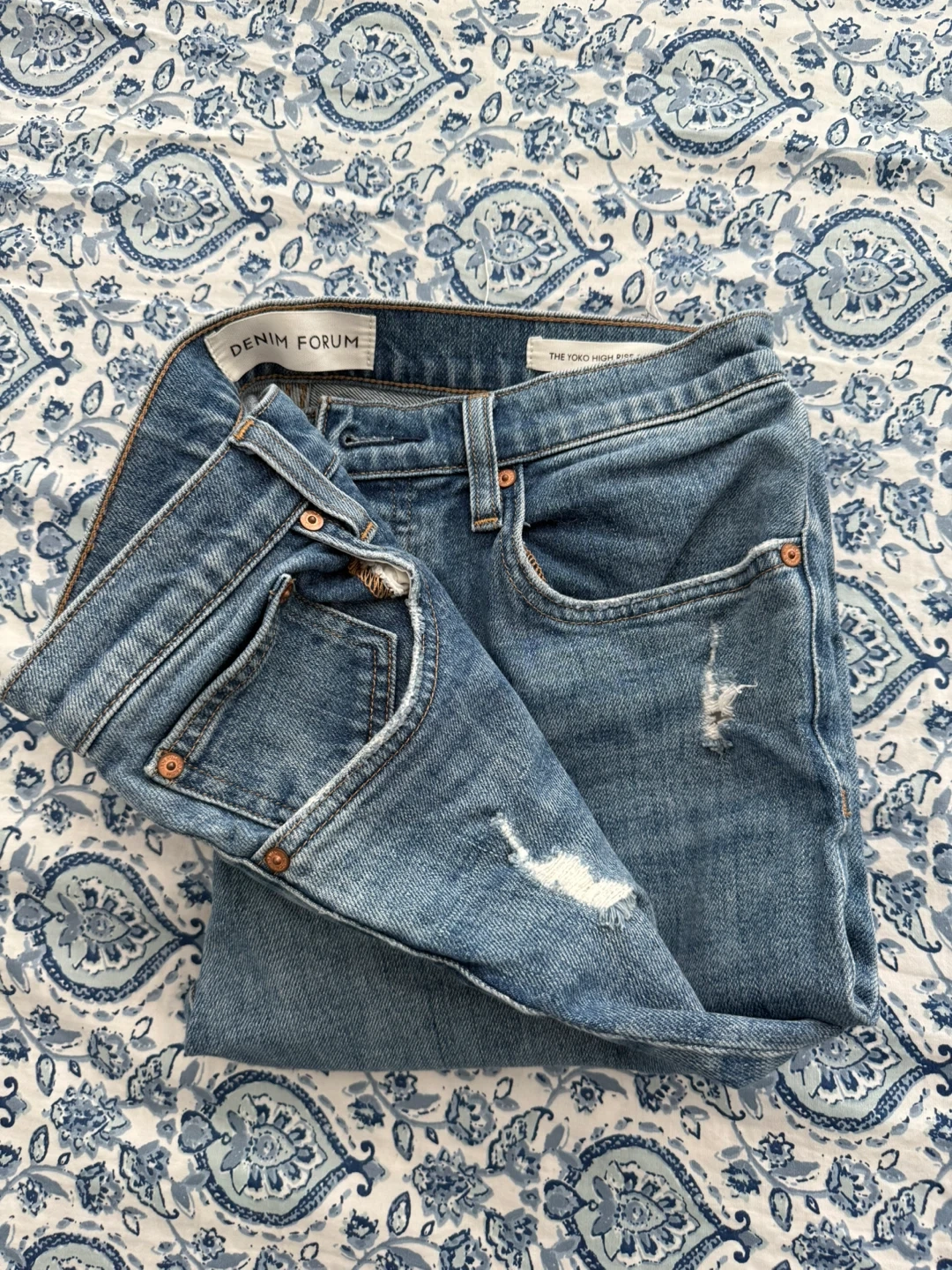 Selling a pair of Denim Forum Yoko High Rise Slim jeans bought from Aritzia in size 28! They are in great condition and ready for a new home. These jeans feature a stylish high-rise fit and a slim silhouette. Perfect for everyday wear!