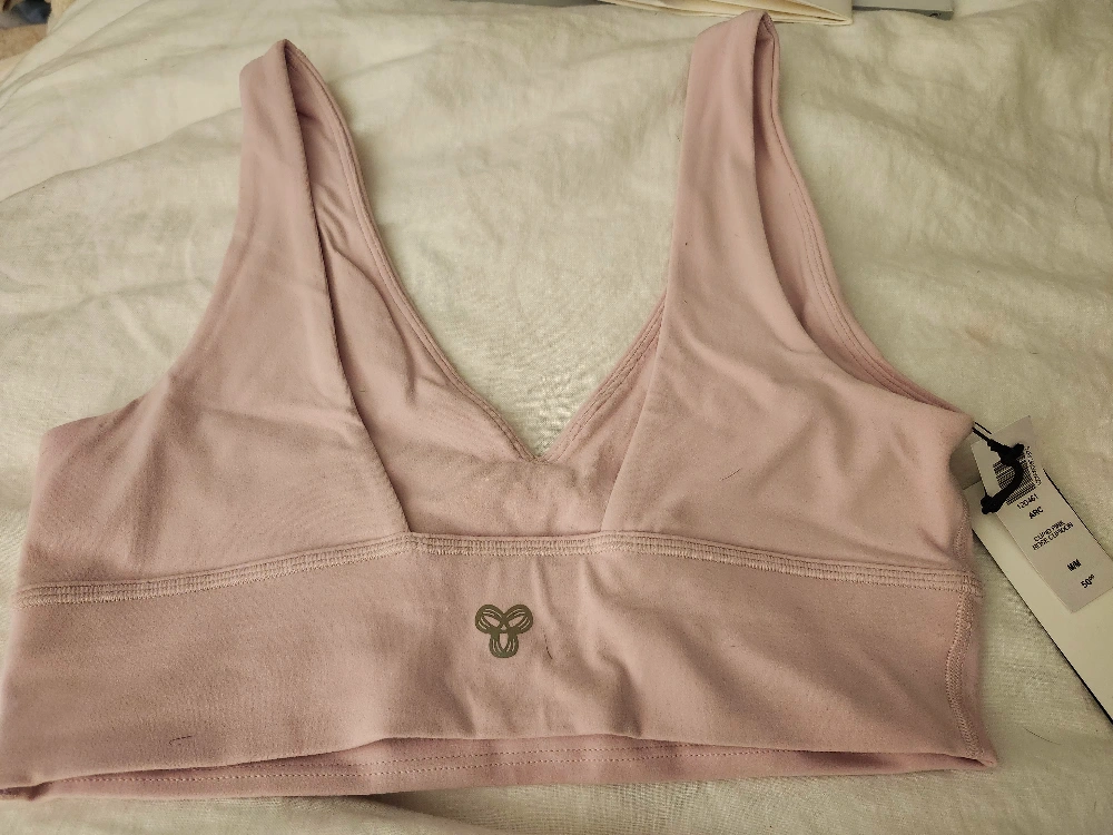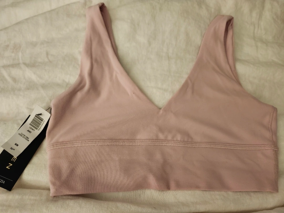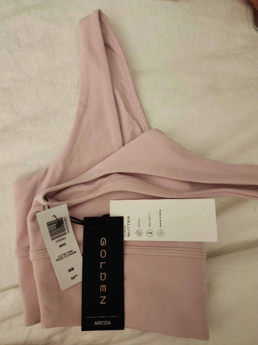 This is an Aritzia Golden Athletic Better Bra in a lovely Cupcake Pink colour. It's a size M/M. Perfect for workouts or everyday wear!