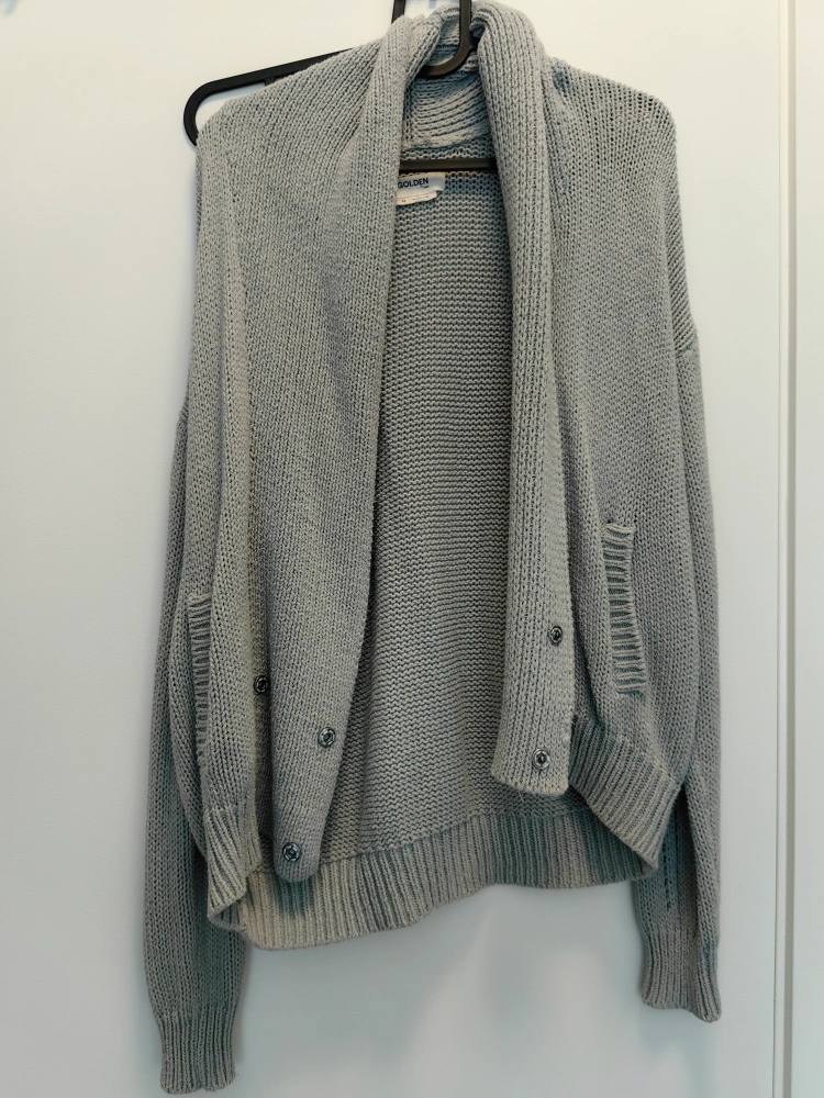 Cozy Holden knit cardigan in a lovely grey colour. It's a size XS and features a relaxed, open style with button details. Perfect for layering on those cooler days!