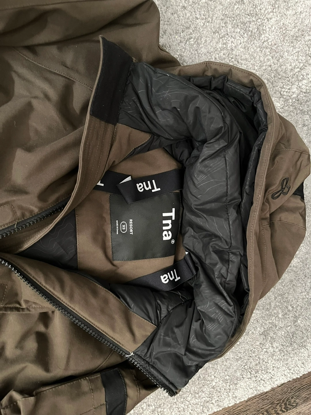 Aritzia tna resort parka jacket in Olive green. Used a few times, no damages. Comes with detachable fur hood.