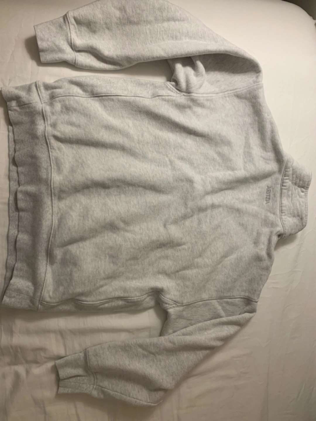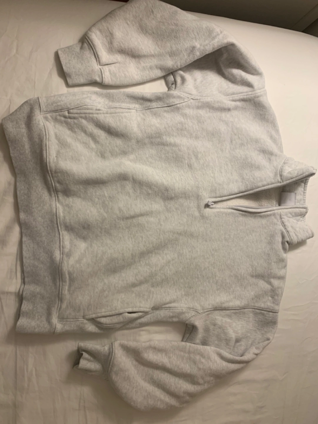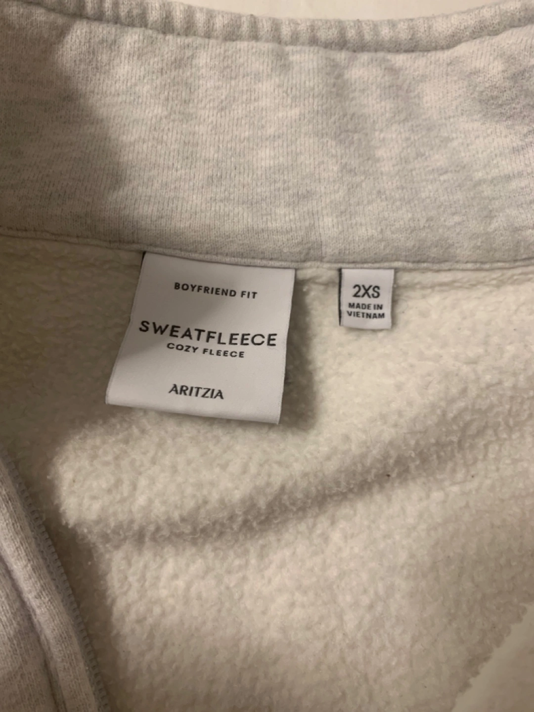 Selling an Aritzia Sweatfleece Cozy Fleece 1/2 Zip in light grey! It's a boyfriend fit and size 2XS. Great condition