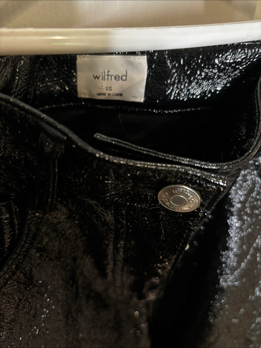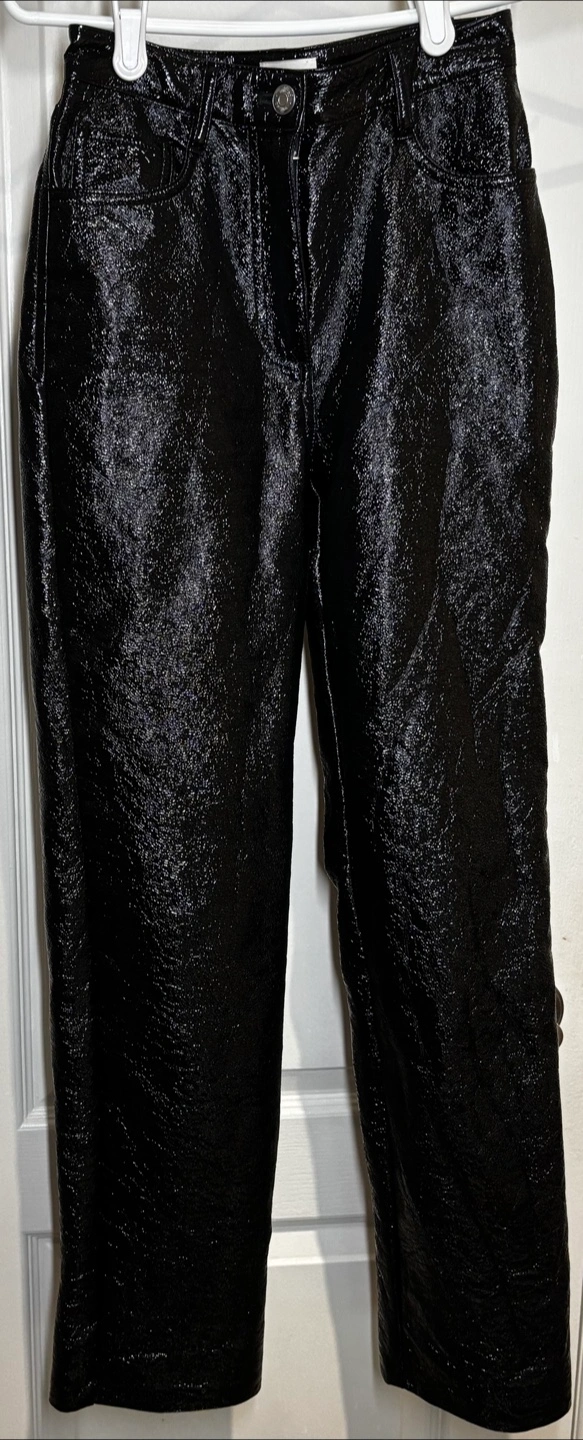 Black patent leather-look pants. Size 00. Straight leg. Pickup in Richmond Hill. Thanks for checking out our listing, we have over 200 items for sale so don’t forget to look at those and we can offer deal packages on multiple items.