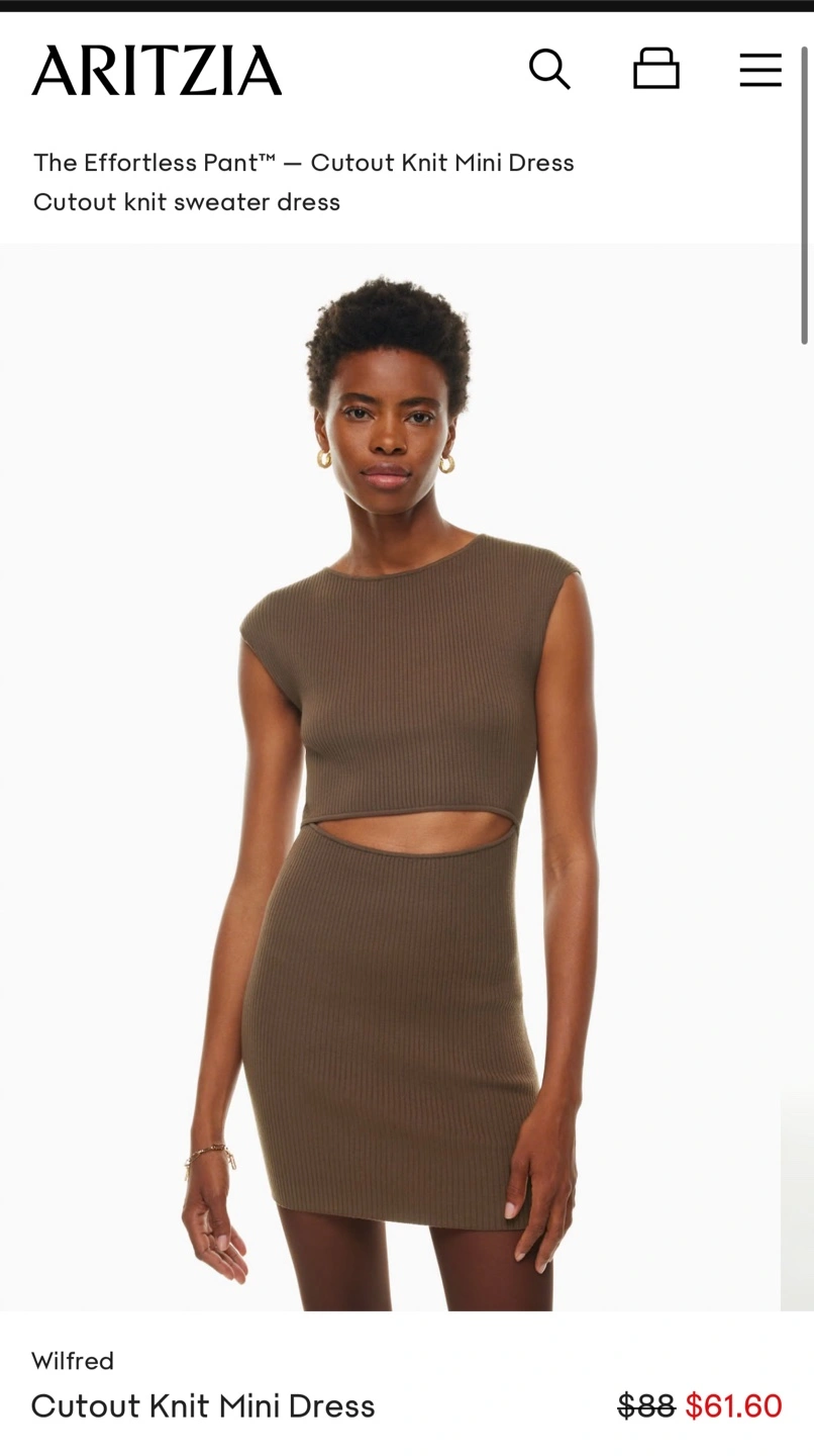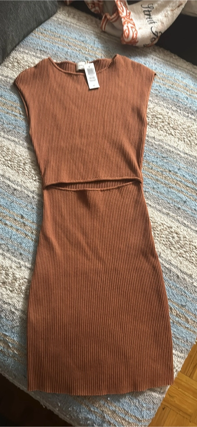 Brand new with Tags Aritzia cut-out knit mini in anise brown. Originally $89.99 Open to offers