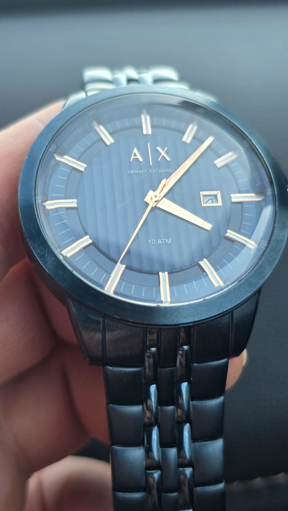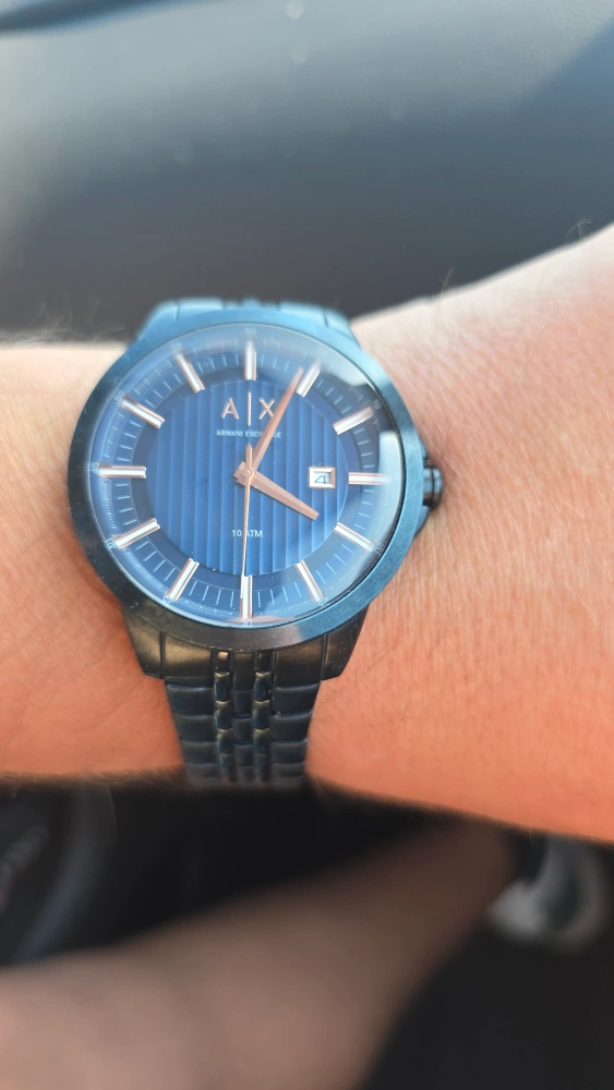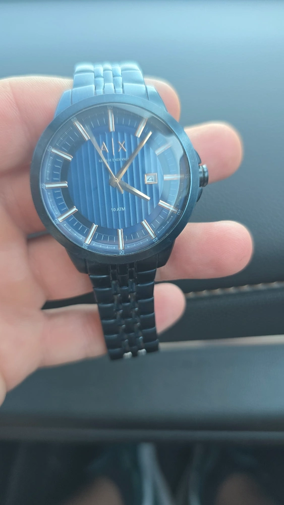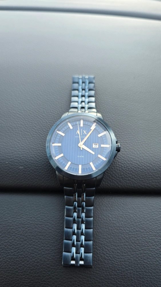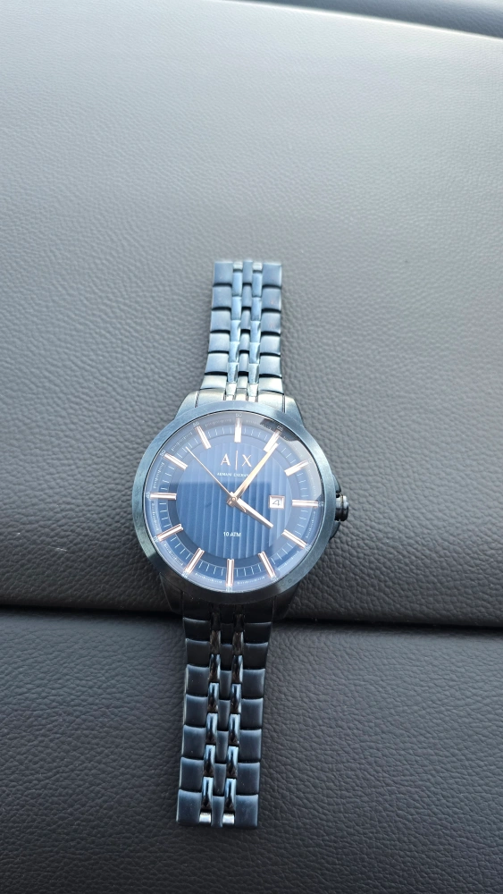 Selling an Armani Exchange watch! It's a stylish timepiece with a blue face and a sleek metal band. The model number is AX2268. It is also 10 ATM water resistant.