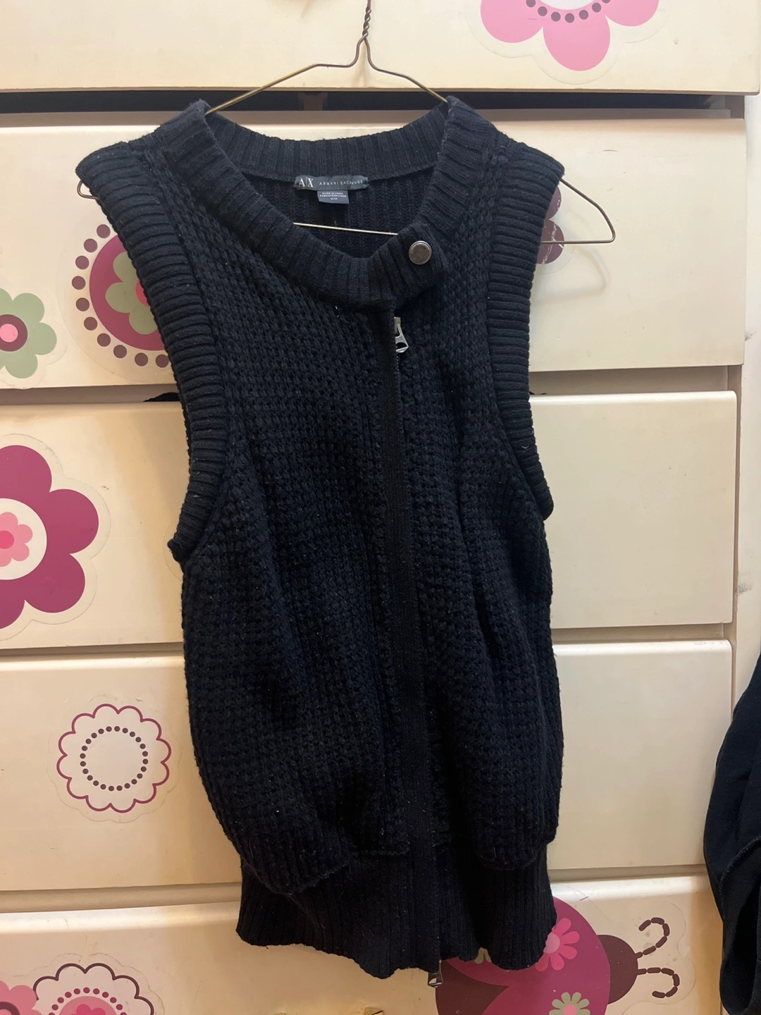Armani Exchange Black Knit Sleeveless Zip-Up Vest - Size M/M