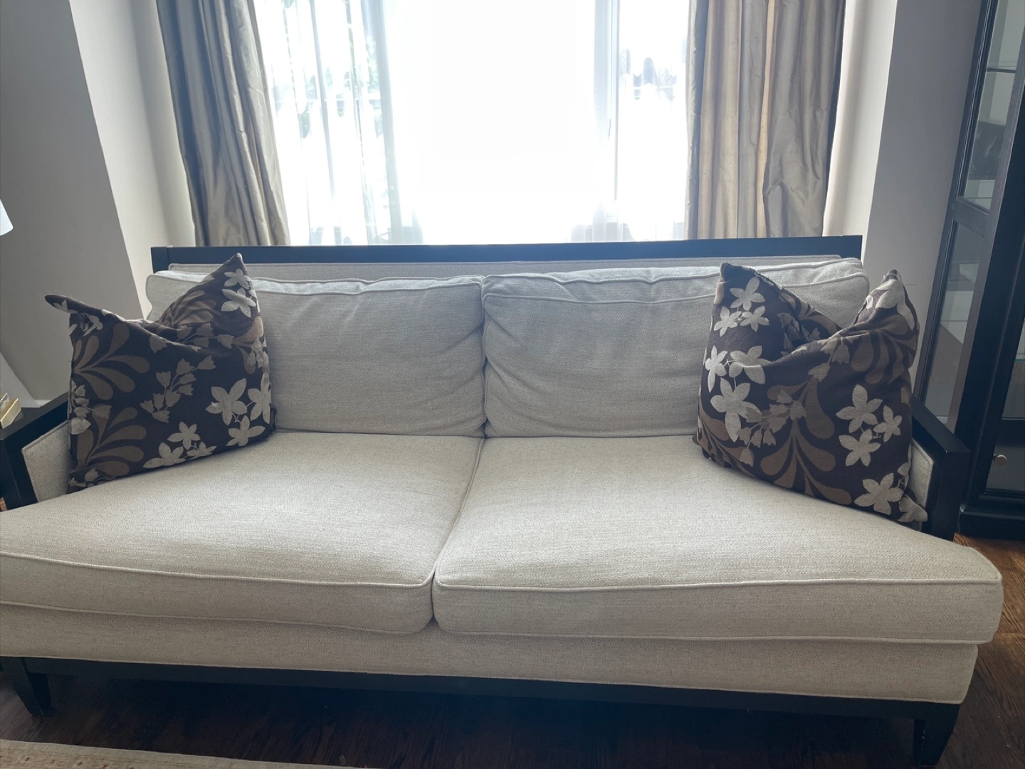 Selling a comfy sofa and matching armchair. They're in great shape and would look lovely in any living room! The neutral colour is super versatile and the cushions are nice and plush. Perfect for relaxing after a long day or entertaining guests. Good condition