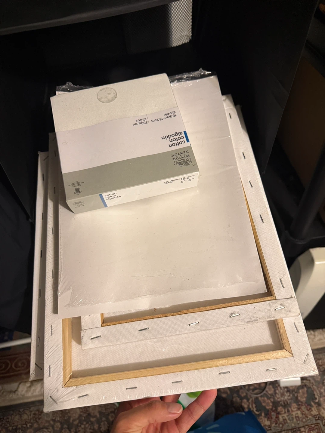 Giving a variety of art supplies! Includes acrylic paints, canvases, and paper.