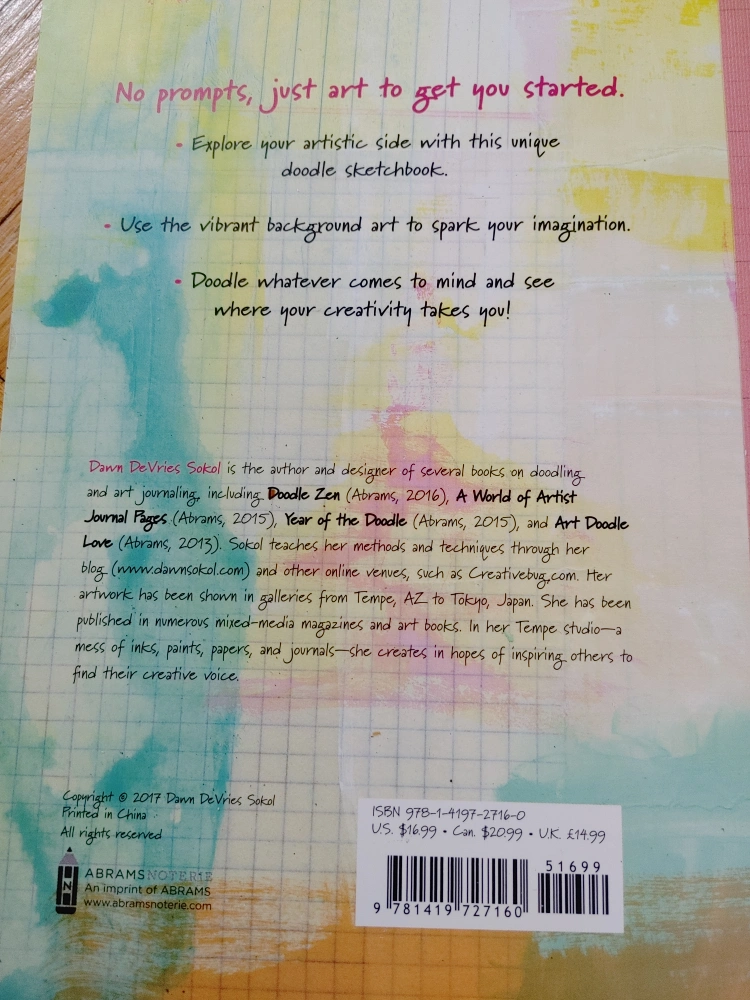 No used pages!!!!!!! Get your creativity flowing with "Art to Start Doodling: A Sketchbook" by Dawn DeVries Sokol! This sketchbook is designed to inspire your artistic side and help you explore your imagination. It features vibrant background art to spark your creativity and encourage you to doodle whatever comes to mind. Perfect for anyone looking to dive into art journaling and doodling!