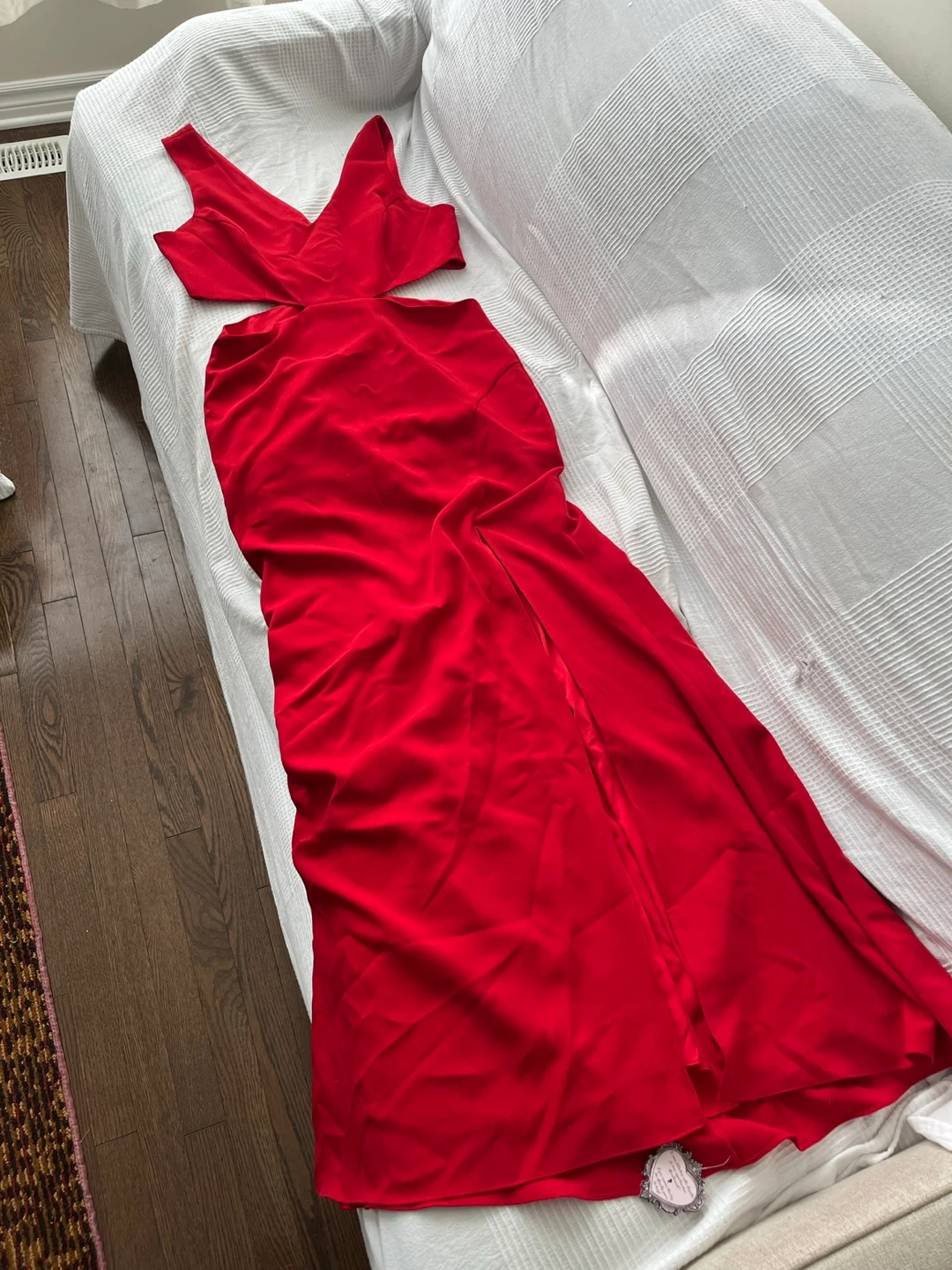 Selling a gorgeous red dress from Arti Gogna! It's labelled as 2xl, but it fits like a medium. The material is a blend of polyester and spandex. Perfect for a special occasion!