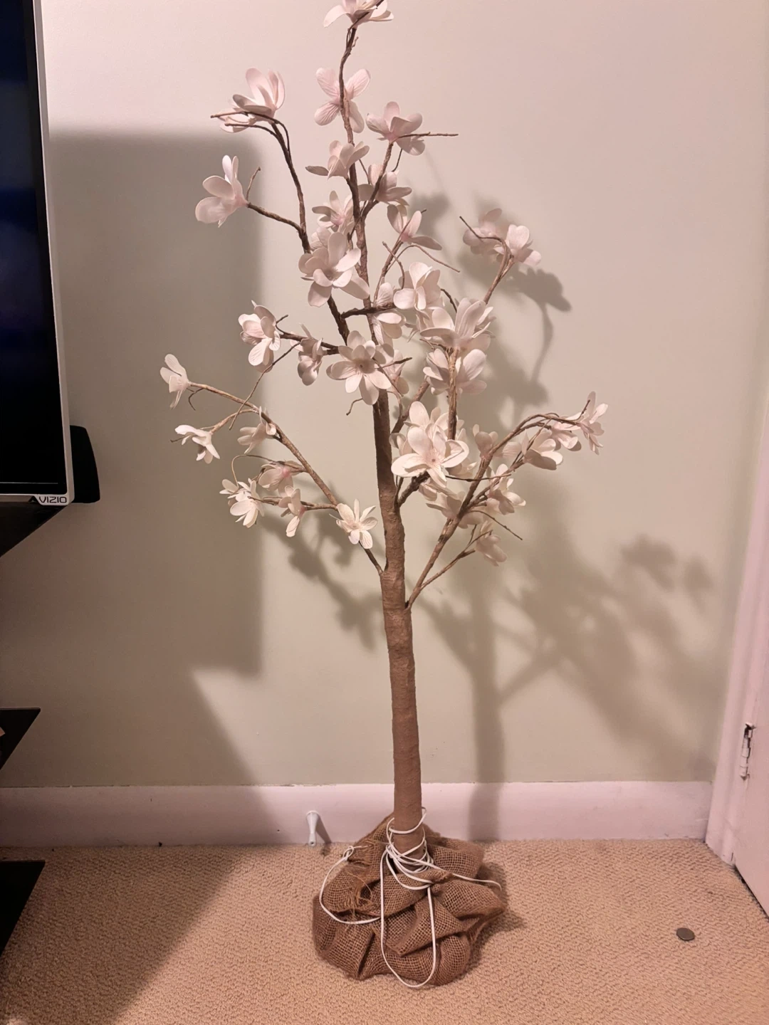 GUC - artificial tree decor! It used to light up, but it doesn’t anymore, as the cord broke. You might be able to diy fix it if you’re handy! (Doesn’t affect the look of the tree, you can’t tell it has lights inside it by looking at it)