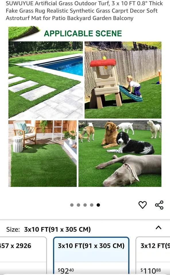 Artificial Grass Outdoor Turf, 3x10FT "0.8" Thick Fake Grass Rug Realistic Synthetic Grass Carprt Decor Soft Astroturf Mat for Patio Backyard Garden Balcony Pick up in Ajax bayly and harwood intersection. Please check my other listings!