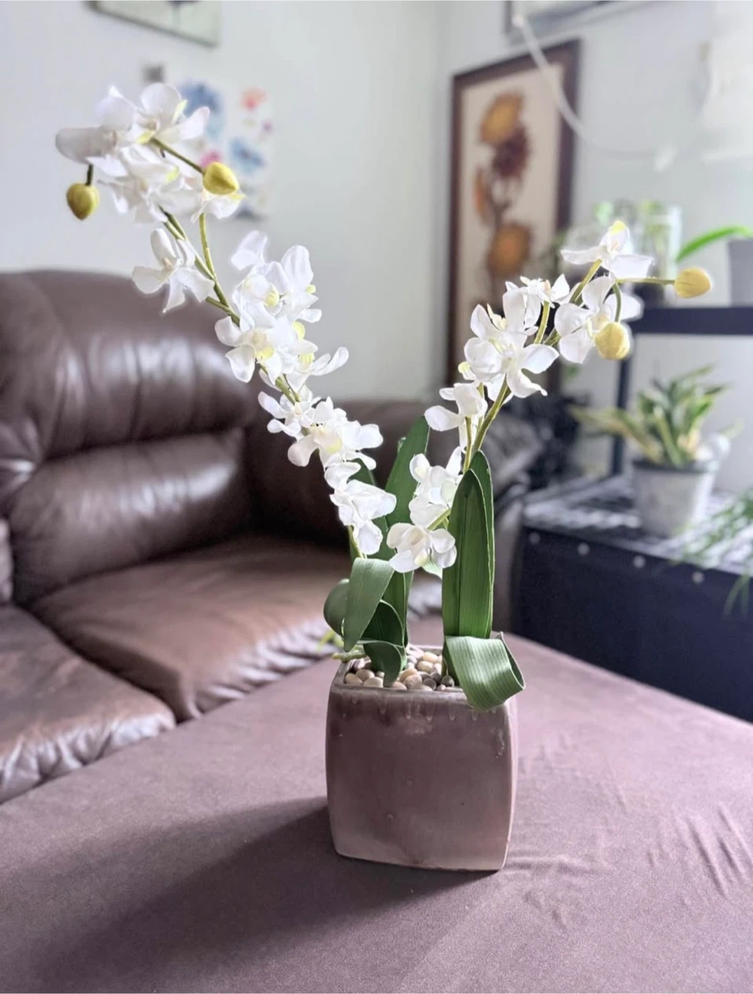 Selling this beautiful artificial orchid in a pot. It's in great condition and would look lovely in any room. It's a simple way to add a touch of nature to your home without the upkeep of real plants