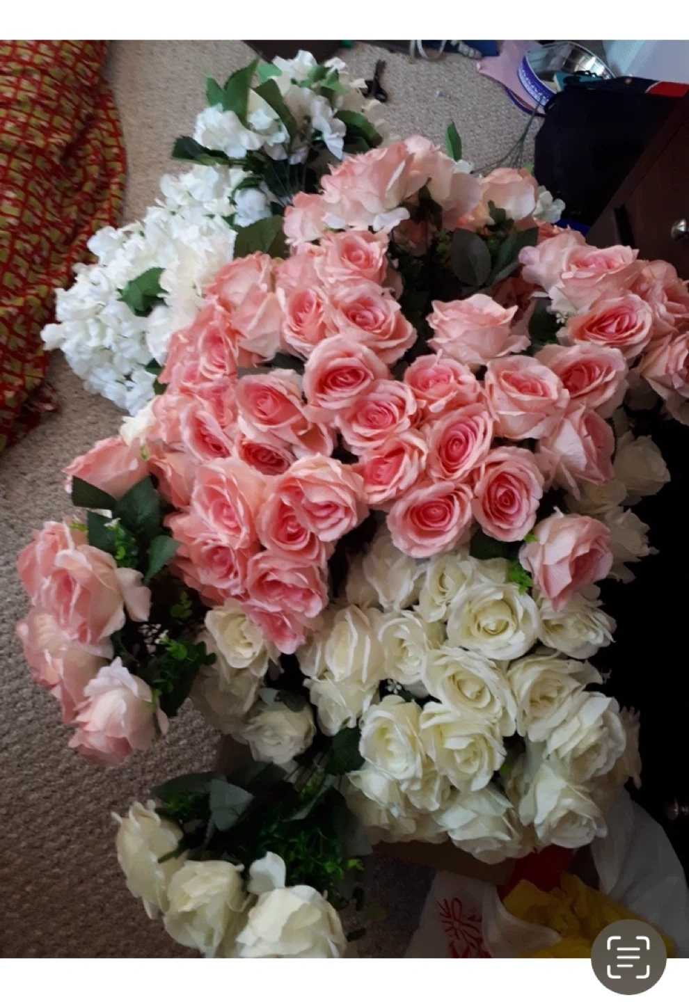 Selling a lovely artificial rose flower bouquet. Perfect for adding a touch of elegance to any room or event. The roses come in a beautiful shade of pink and white. They are in great condition and ready to brighten up your space! Together the LED lights message me if you interested Never use I plan a business event not proceeding so I sale it