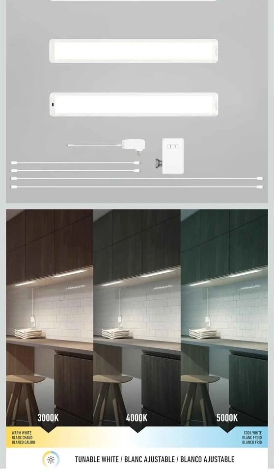 Brand: artika Color: White Material: Aluminum Room type: Dressing Room, Kitchen, Laundry Room etc... Ultra-Slim Design: These kitchen lights feature an ultra-slim profile, seamlessly blending with any decor. Perfect for under cabinet lights, closet lights, or as elegant under cupboard lights for kitchen, adding a sleek touch to your space. Selectable Color Temperature: Experience ultimate flexibility with selectable color temperature options in our under cabinet lights. Tailor your kitchen lighting from warm to cool tones, ensuring ideal lighting for prepping meals or showcasing kitchen decor. Easy Plug-In Installation: Designed for convenience, these under counter lights plug in effortlessly. Transform your kitchen cabinet lights setup quickly, offering practical led strip lights for kitchen under cabinet without the need for complex wiring or installation. Easy To Install. Pick it up Niagara Falls