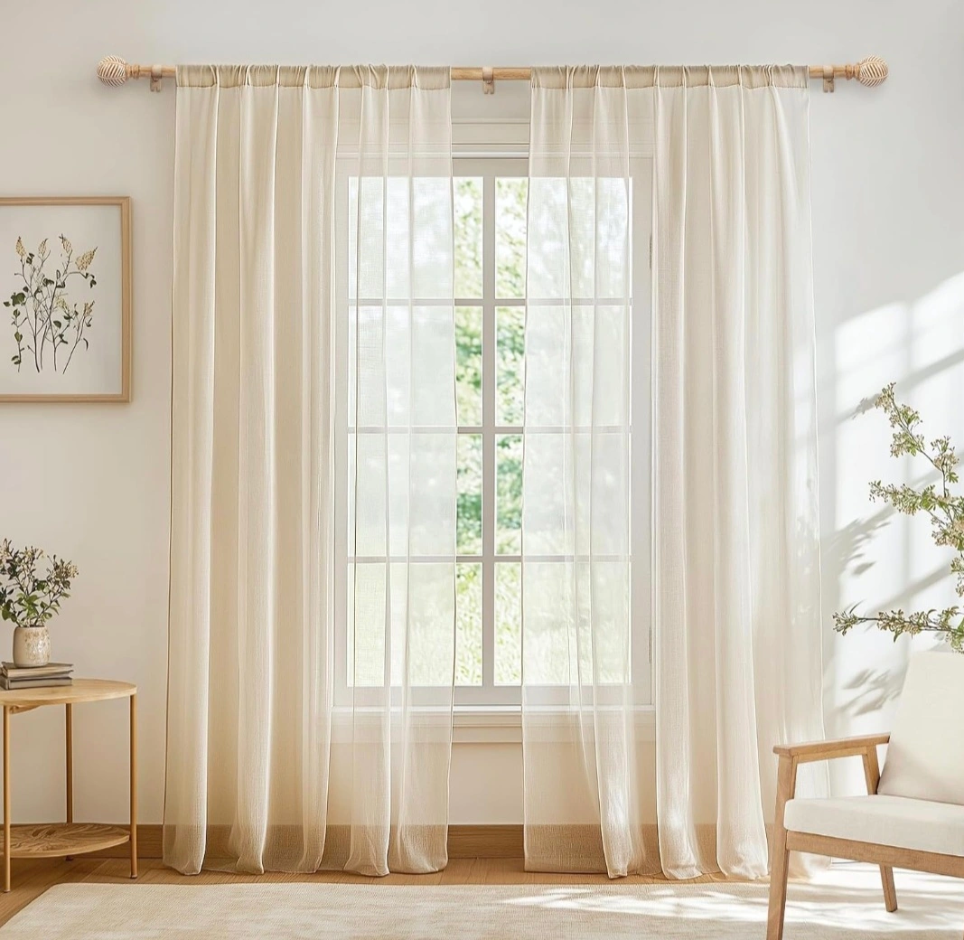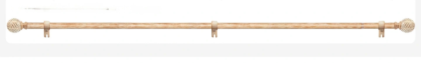The set features intricately sculpted finials with imitation wood grain and a nature-inspired leaf motif. It's a refined way to introduce texture and a warm, rustic touch to any living space. Heavy Duty. New. 1" Diameter 32"-86"